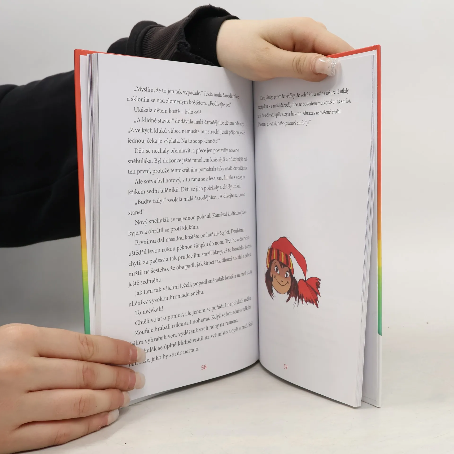 Malá čarodějnice je ještě mladá, je jí pouhých sto dvacet sedm let. Bydlí hluboko v lese na samotě s havranem Abraxasem, který umí mluvit. Moudrý havran je dobrým rádcem malé čarodějnice a snaží se na ni dohlížet, aby nevyváděla moc hloupostí, ale pokaždé ji neuhlídá. Co všechno se může stát, když někdo umí čarovat, si už přečtete v naší knížce, jejíž hrdinku jistě znáte z televizních večerníčků.