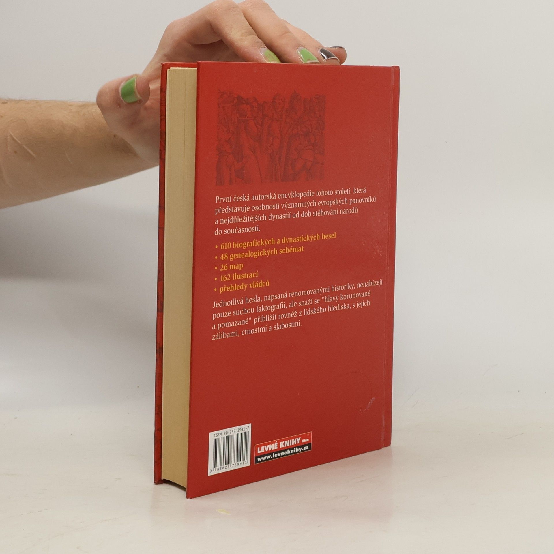 Encyklopedie. Původní dílo českých historiků. Kromě Evropy obsahuje biografická hesla věnovaná též vládcům Byzance, Balkánu a Ruska. Doplněno přehledem vládnoucích dynastií jednotlivých evropských zemí a genealogickými schématy. Významní evropští panovníci a panovnické rody od 5. do 20. stol.