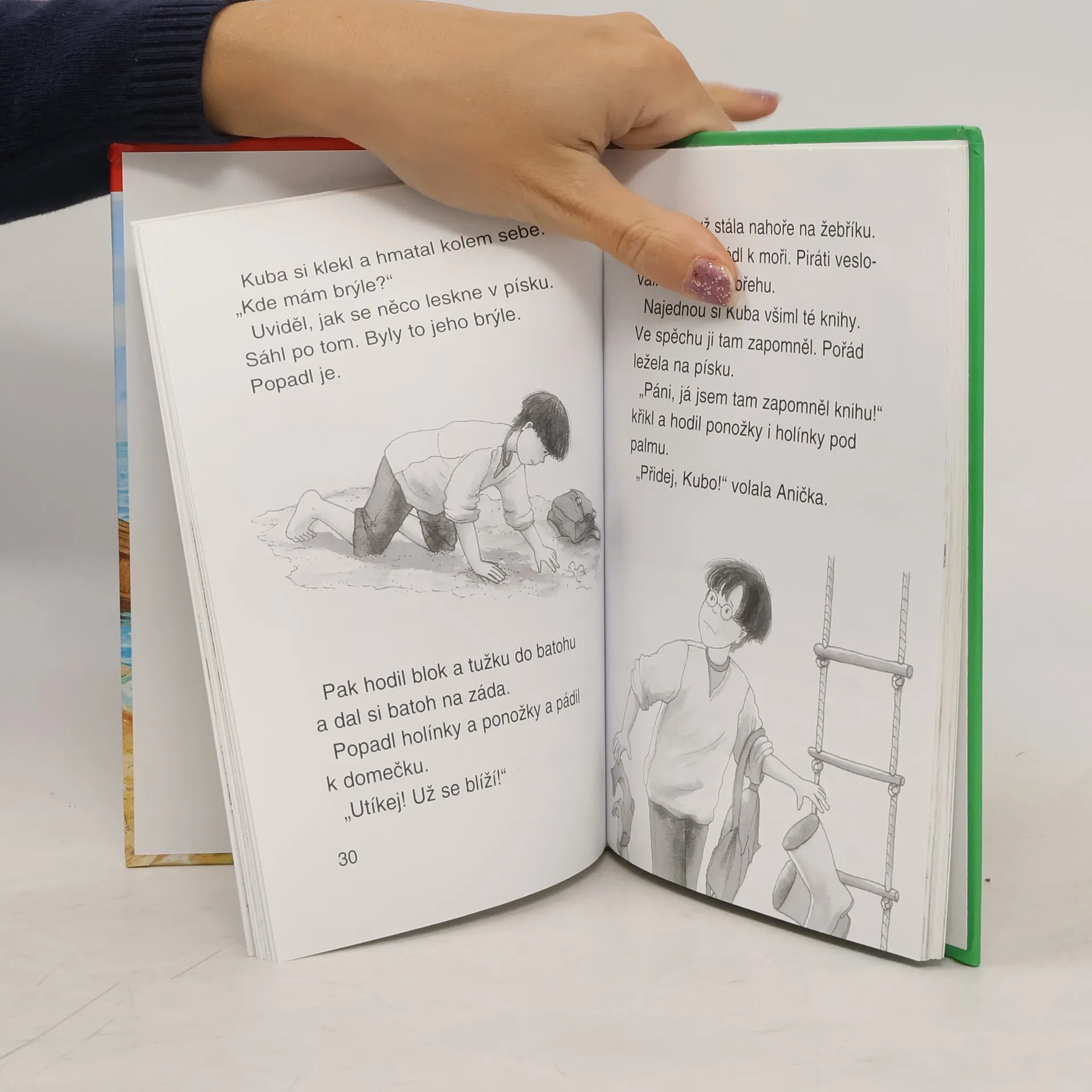 Čtvrtá kniha série Dobrodružné výpravy. Anička a Kuba zažívají díky magickému domečku dobrodružství na místech, o kterých se ostatním dětem může jen zdát. Stačí tak málo – otevřít knihu, vyslovit přání a magický domeček je přenese na daleký tropický ostrov. Upadnou však do zajetí pirátů, kteří hledají poklad. Podaří se jim vrátit zpět domů?