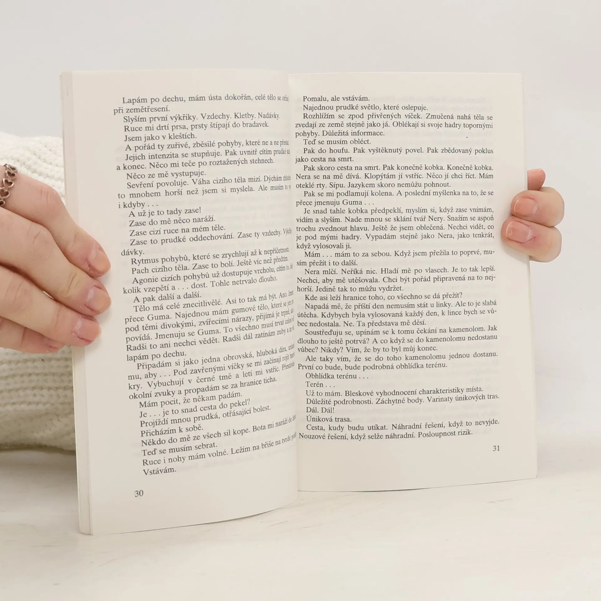 Znovu se narodit do apokalypsy. Nalézat a prožívat zkázu, hrůzu, děs. Nerozumět světu ani sobě. Každou hodinu, haždou vteřinu věnovat boji o holou existenci. Naslouchat skrytým nápovědím. Používat své tělo jako dokonalý stroj, kde palivem je živočišná energie a chladícím médiem ledová zuřivost. Procházet sem a tam kulisami, které už dávno ztratily své pravé jméno. Dojít až k bráně pekla a zabušit na ni. Ale zevnitř.