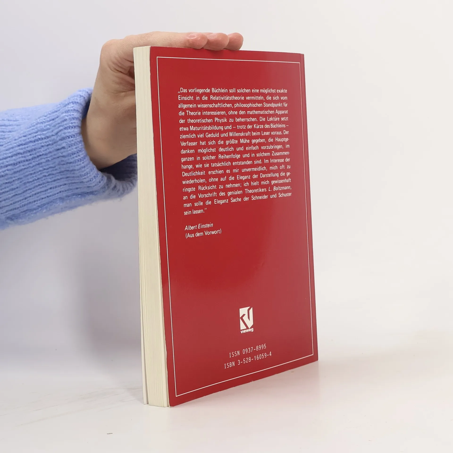 In der vorliegenden Ausarbeitung von vier Vortragen, die ich an der Universitat Princeton im Mai 1921 gehalten habe, wollte ich die Hauptgedanken und mathematischen Methoden der Relativitatstheorie zusammenfassen. Dabei habe ich mich bemuht, alles weniger Wesentliche wegzulassen, das Grundsatzliche aber doch so zu behandeln, dass das Ganze als Einfuhrung fur alle diejenigen dienen kann, welche die Elemente der hoheren Mathematik beherrschen, aber nicht allzuviel Zeit und Muhe auf den Gegenstand verwenden wollen. Auf Vollstandigkeit kann diese kurze Darlegung selbstverstandlich keinen Anspruch machen, zumal ich die feineren, mehr mathematisch interessanten Entwicklungen, welche sich auf Variationsrechnung grunden, nicht behandelt habe. Mein Hauptziel war es, das Grundsatzliche in dem ganzen Gedankengang der Theorie klar hervortreten zu lassen. Albert Einstein (Vorwort zur 1. Auflage der 'Vier Vorlesungen uber Relativitatstheorie')"