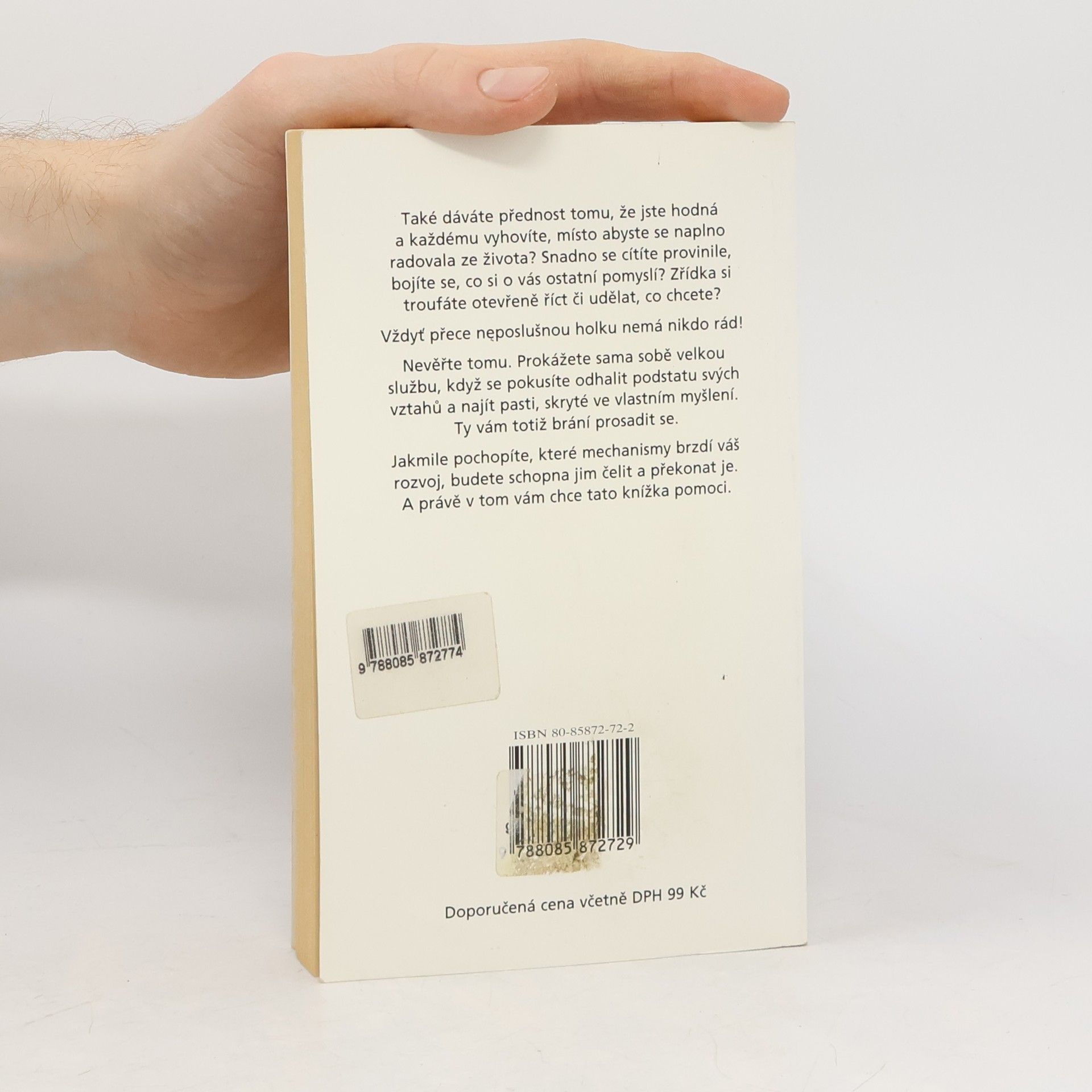 Kniha určená ženám, které se nedokážou prosadit, které jsou hodné a snaží se každému vyhovět, místo aby se naplno radovaly ze života, cítí se provinile a bojí se otevřeně říct či udělat, co chtějí. Autorka ukazuje mechanismy, které brzdí rozvoj žen, odhaluje pasti skryté ve vlastním myšlení a nabízí způsob, jak jim čelit a překonat je.