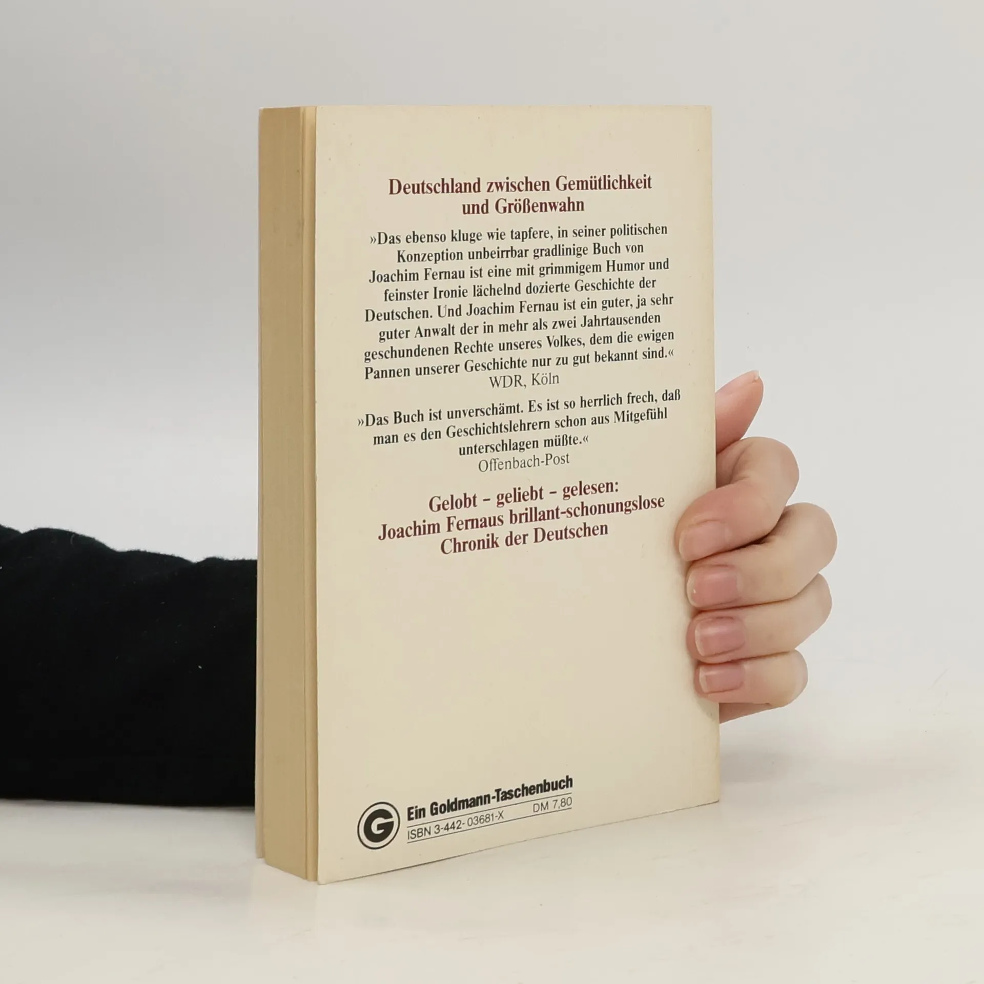 Seit seinem Erscheinen hat Joachim Fernaus Deutschland-Buch die Gemüter bewegt. Immer wieder folgen neue Leser fasziniert dieser heiter wirkenden Chronik der Deutschen, die aber von tiefstem Ernst ist und ein unbestechlich klares Wissen um die Pannen unserer Geschichte verrät.