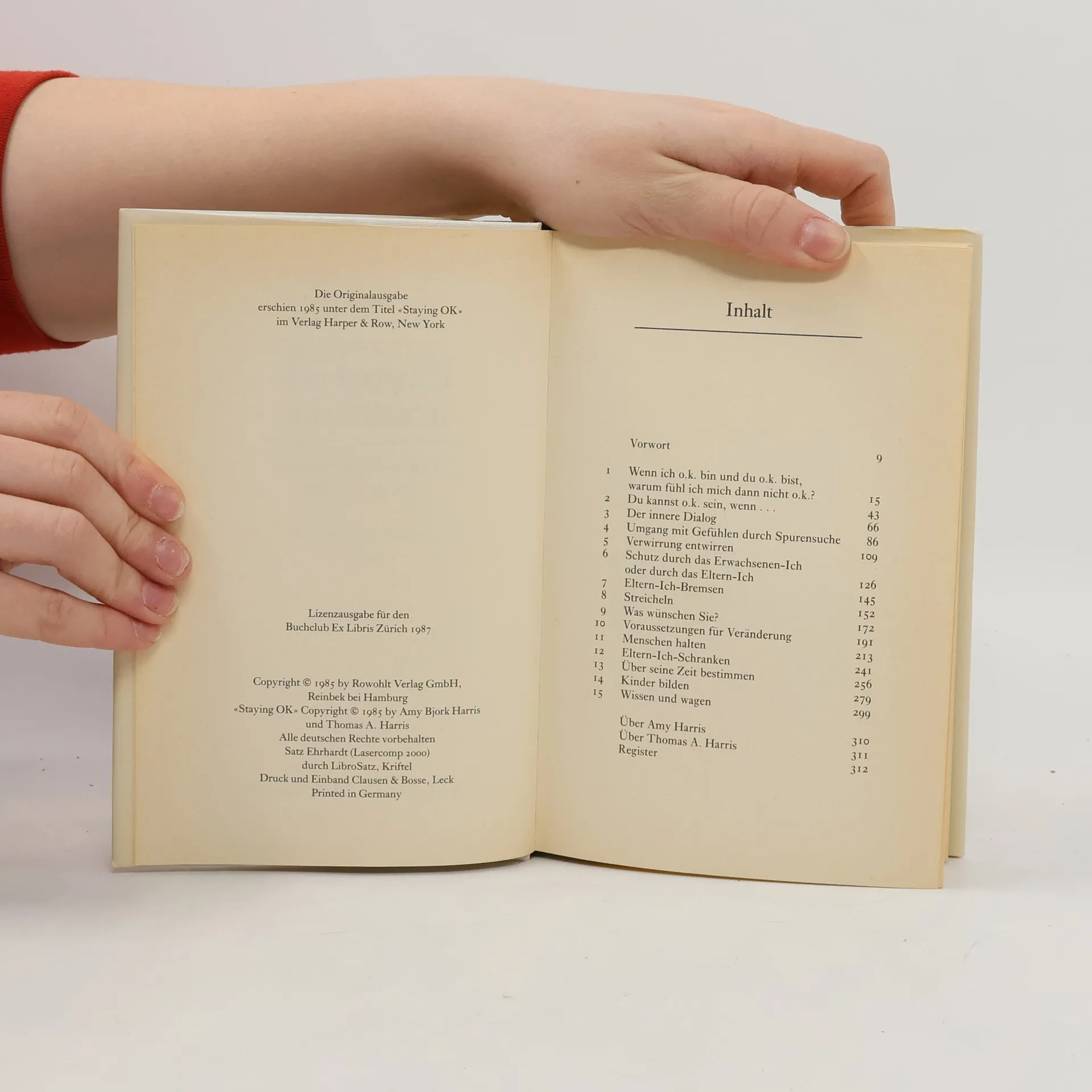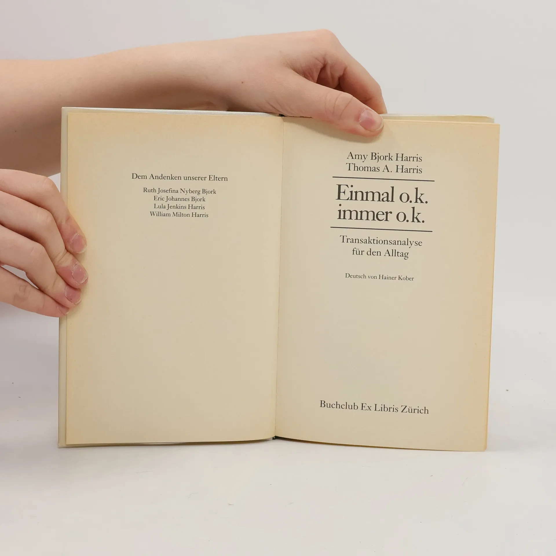 Thomas A. Harris (1910-1995) besuchte die High School in San Antonio, anschließend studierte er Medizin. 1942 begann seine Ausbildung zum Facharzt für Psychiatrie in Washington, D. C., danach diente er als Psychiater in der U. S. Navy. Er wurde Chefarzt des psychiatrischen Dienstes am Marine-Hospital in Philadelphia. 1947 übernahm er die Leitung der Psychiatrischen Abteilung des Amtes für Medizin und Chirurgie im Navy Department. Nach seinem Abschied erhielt er einen Lehrauftrag für Psychiatrie an der Universität von Arkansas. Im Anschluss daran wurde er Direktor der Behörde für das Anstaltswesen im Staate Washington an der Westküste. Harris war Gründer und Präsident des Instituts für Transaktionsanalyse in Sacrameno und Direktor der Internationalen Vereinigung für Transaktionsanalyse. Hainer Kober, geboren 1942, lebt in Soltau. Er hat u. a. Werke von Stephen Hawking, Steven Pinker, Jonathan Littell, Georges Simenon und Oliver Sacks übersetzt.