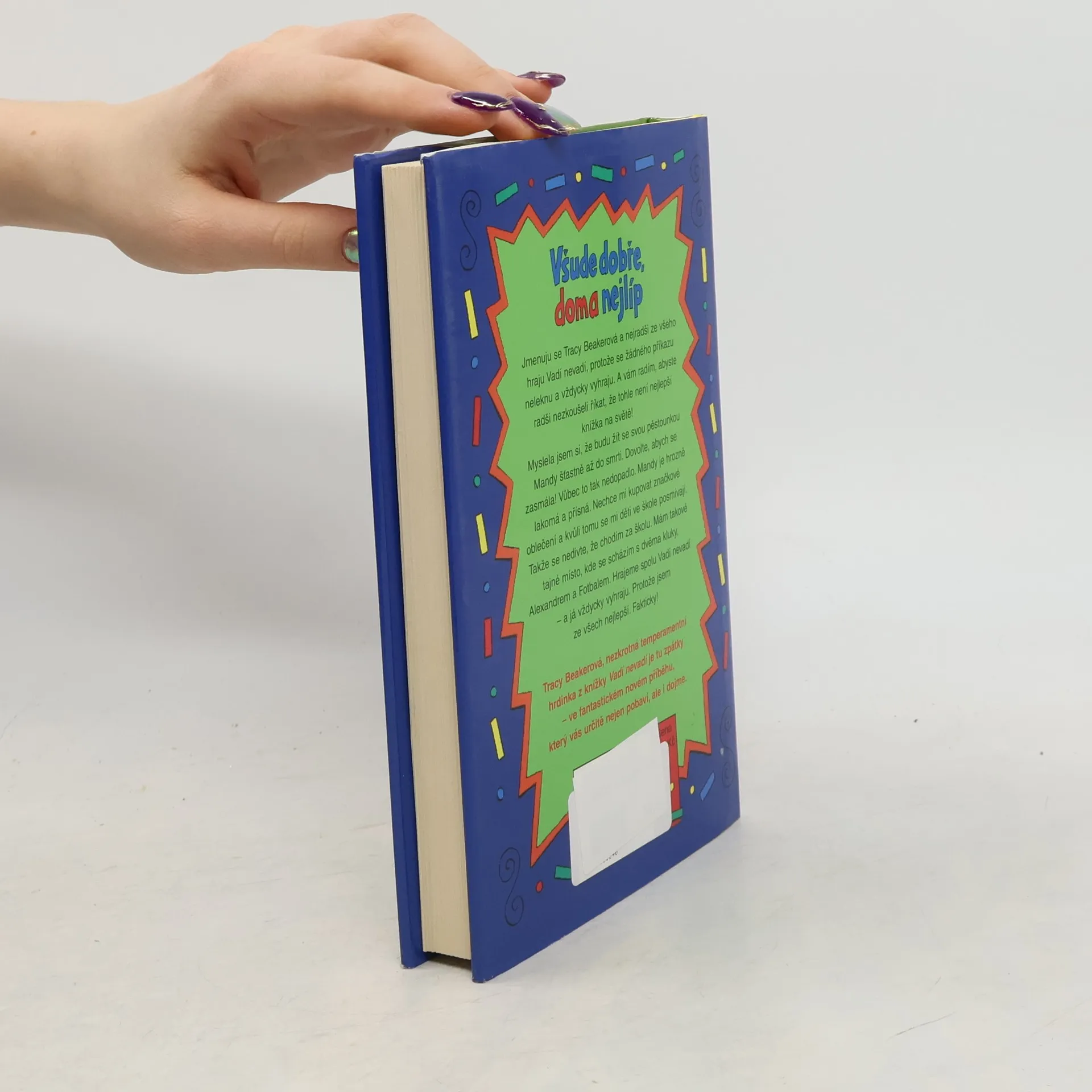 Jmenuju se Tracy Beakerová a nejradši ze všeho hraju Vadí nevadí, protože se žádného příkazu neleknu a vždycky vyhraju. A vám radím, abyste radši nezkoušeli říkat, že tohle není nejlepší knížka na světě! Myslela jsem si, že budu žít se svou pěstounkou Mandy šťastně až do smrti. Dovolte, abych se zasmála! Vůbec to tak nedopadlo. Mandy je hrozně lakomá a přísná. Nechce mi kupovat značkové oblečení a kvůli tomu se mi děti ve škole posmívají. Takže se nedivte, že chodím za školu. Mám takové tajné místo, kde se scházím s dvěma kluky, Alexandrem a Fotbalem. Hrajeme spolu Vadí nevadí - a já vždycky vyhraju. Protože jsem ze všech nejlepší. Fakticky! 4. vydání