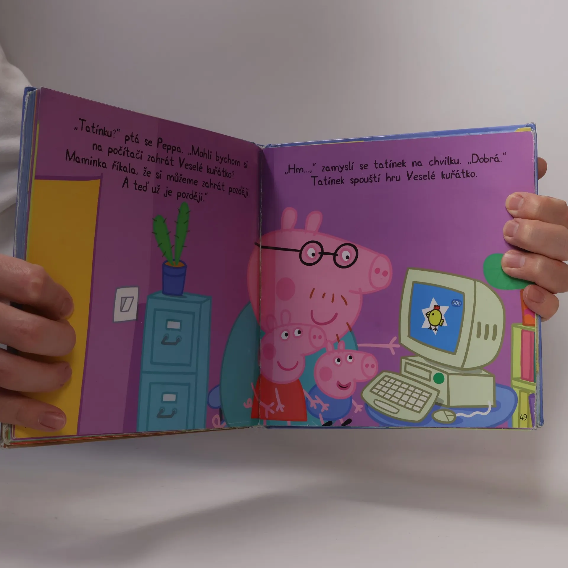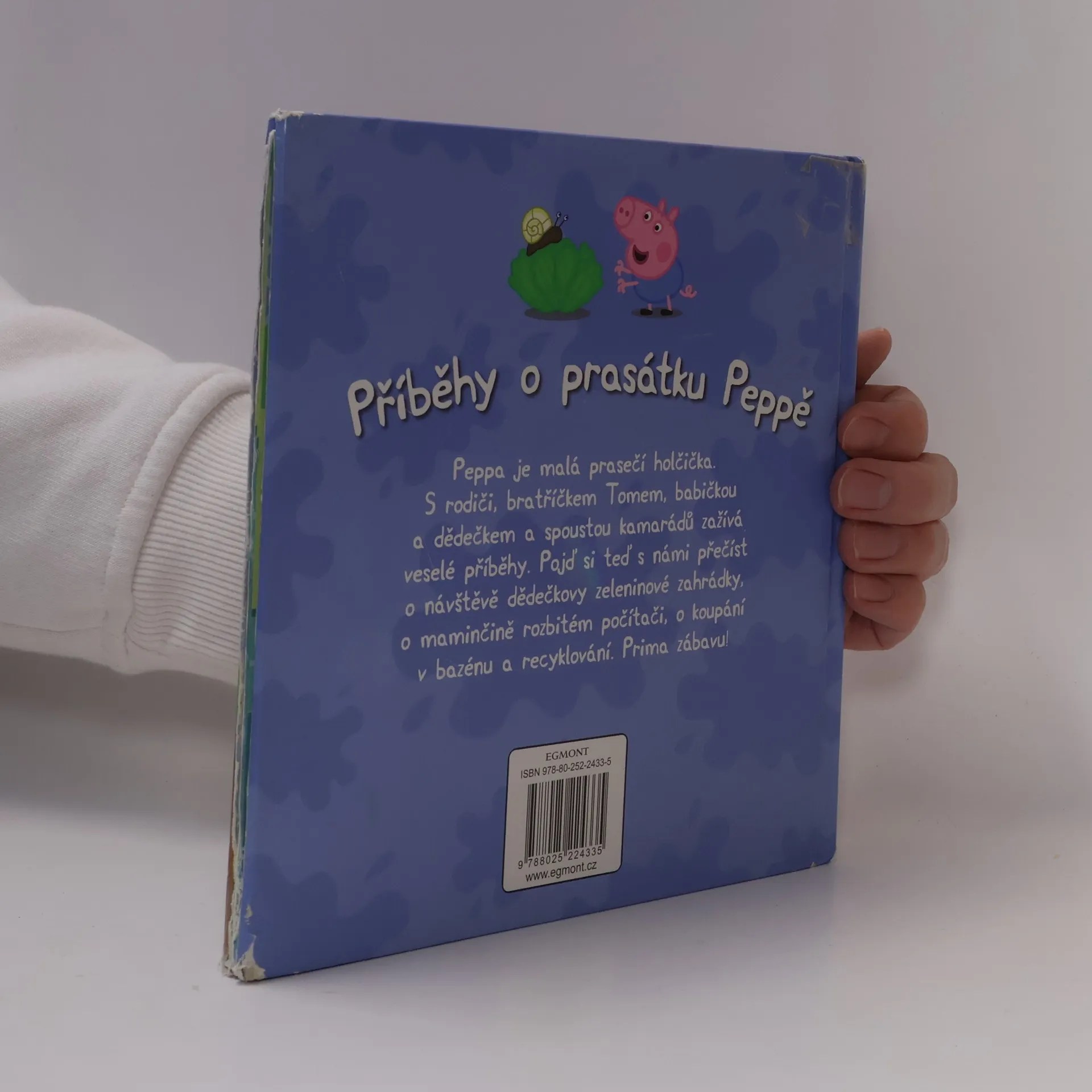 Peppa je malá prasečí holčička. S rodiči, bratříčkem Tomem, babičkou a dědečkem a spoustou kamarádů zažívá veselé příběhy. Pojďte si s námi přečíst o návštěvě dědečkovy zeleninové zahrádky, o maminčině rozbitém počítači, o koupání v bazénu a recyklování.