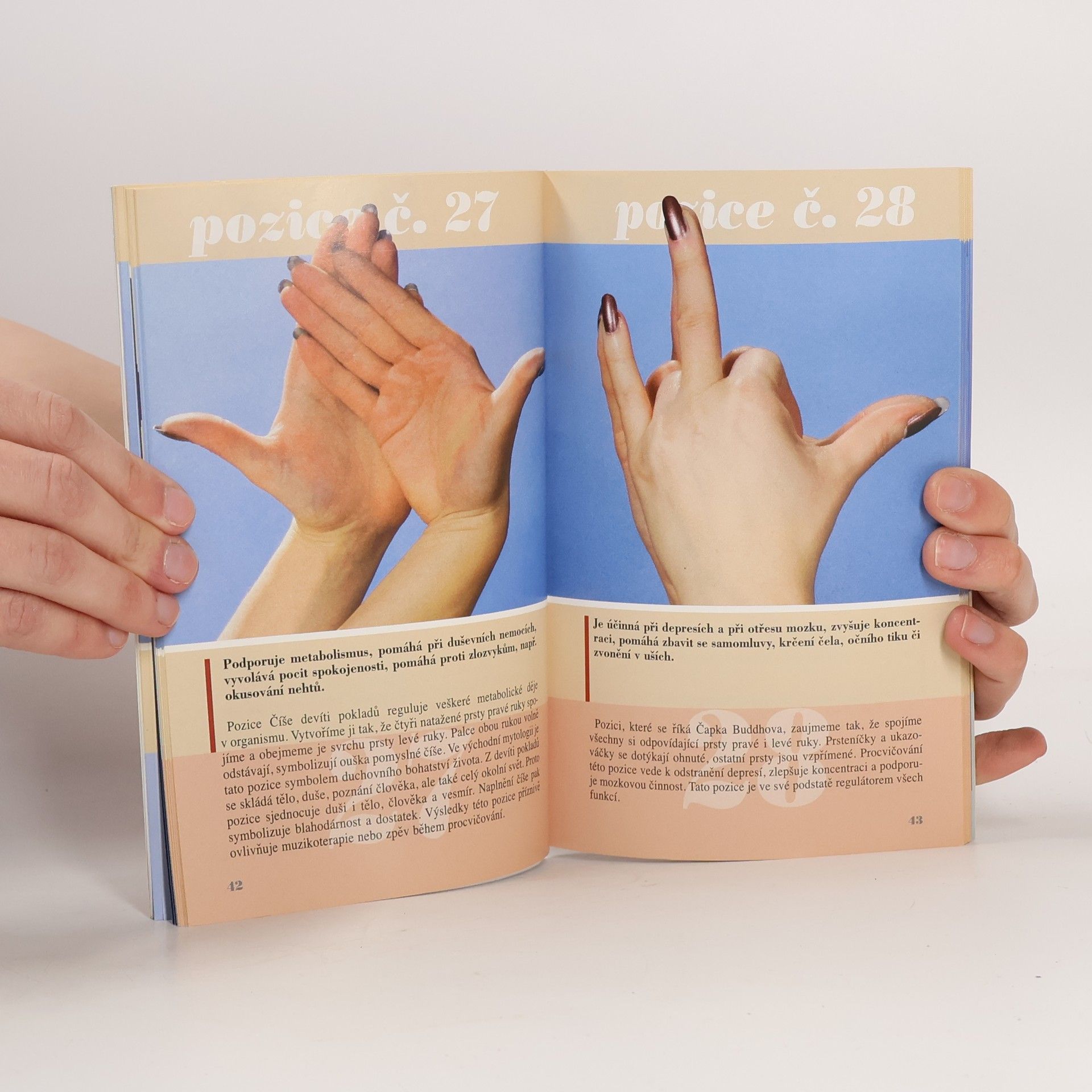 Přední česká astroložka a autorka mnoha knih o józe, alternativní medicíně a léčitelství vysvětluje v knize jednoduché způsoby, jak upevnit a postupně zlepšit duševní a fyzickou rovnováhu člověka. Uvádí téměř 120 pozic rukou a nohou pro krásu, svěžest, meditaci i léčbu. Kombinuje je s aromaterapií, muzikoterapií, zpěvem a dechovým cvičením.
