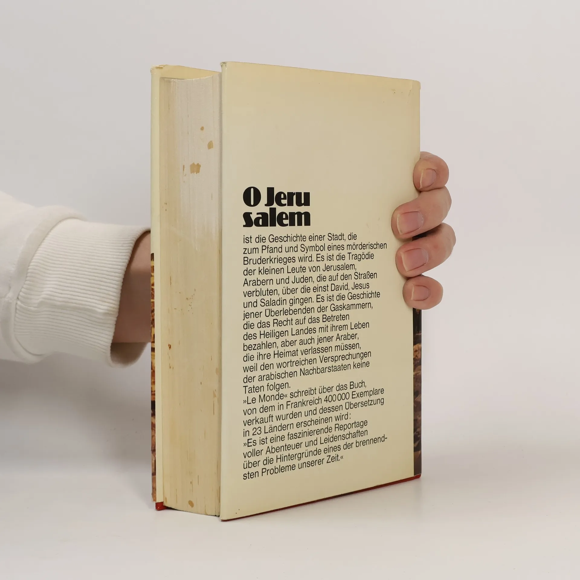 Der ausführliche Bericht von Larry Collins und Dominique Lapierre über den ersten jüdisch-arabischen Krieg (1948/49), der in einem erbitterten Ringen um Jerusalem gipfelte, schildert die geschichtlichen Ursachen, den Verlauf und die menschliche Tragik einer Auseinandersetzung, die die Welt in Atem hielt. Das in 23 Sprachen übersetzte Buch verwertet alle erreichbaren Dokumente und gewinnt durch die Aussagen der Beteiligten beider Seiten eine packende Authentizität.