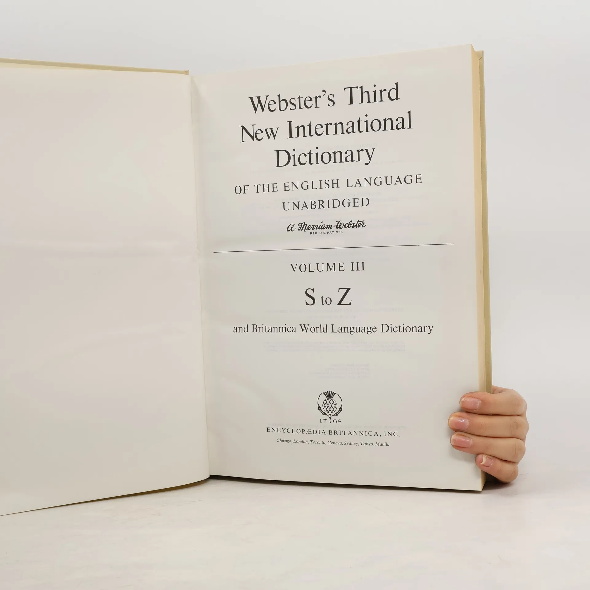 Webster's third new international dictionary of the English language : unabridger : with seven language dictionary : and Britannica World language dictionary. Volume III. S to Z, AA.VV.