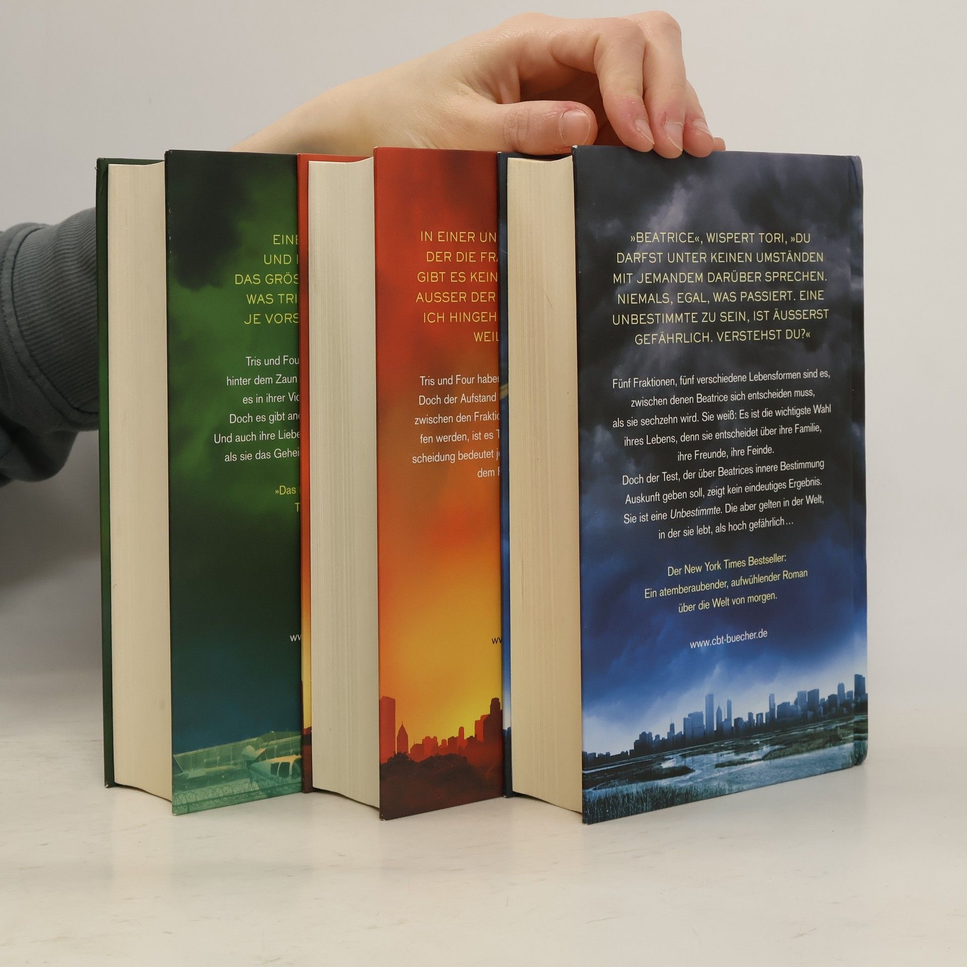 Die Gesamtausgabe der atemberaubenden Trilogie um Tris und Four Altruan – die Selbstlosen. Candor – die Freimütigen. Ken – die Wissenden. Amite – die Friedfertigen. Und Ferox – die Furchtlosen. Seit der Verfilmung von Die Bestimmung sind Tris, Four und die Fraktionen in aller Munde. Jetzt gibt es die Trilogie als Sammlerbox für alle Fans zum Vorteilspreis mit exklusivem Bonusmaterial in Band 3. Ausstattung: Die Bestimmung Bände 1 - 3