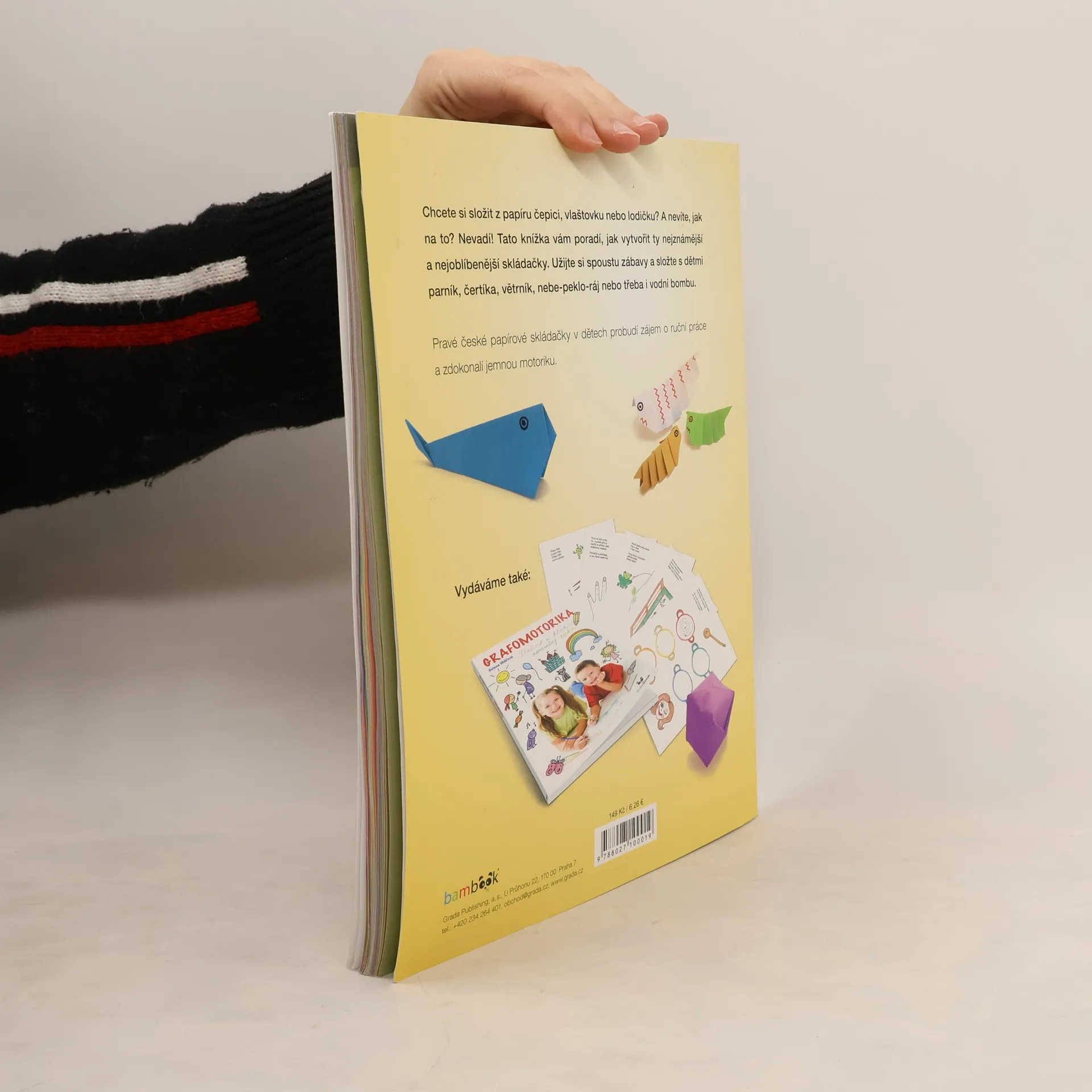 Chcete si složit z papíru čepici, vlaštovku nebo lodičku? A nevíte, jak na to? Nevadí. Tato knížka vám poradí, jak vytvořit ty nejznámější a nejoblíbenější skládačky. Užijte si spoustu zábavy a složte s dětmi parník, čertíka, větrník, nebe-peklo-ráj nebo třeba i vodní bombu. Pravé české papírové skládačky v dětech probudí zájem o ruční práce a zdokonalí jemnou motoriku.