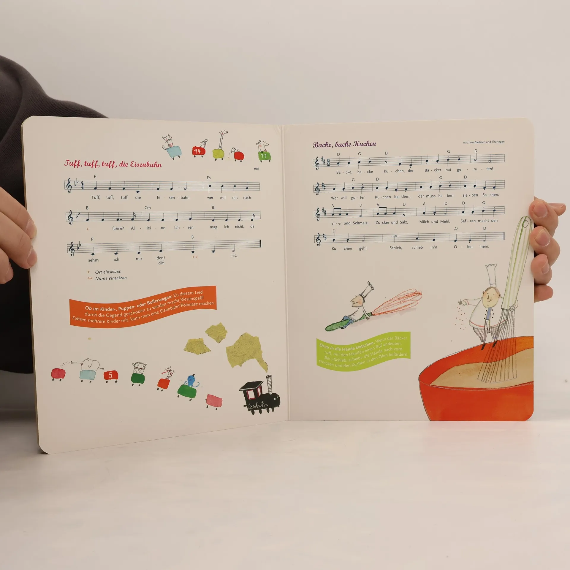 Die schönsten Lieder für die Allerkleinsten und heißgeliebte Klassiker aus der Kita, zauberhaft bebildert von Erfolgsillustratorin Sybille Hein. Mit kreativen Spiel- und Bewegungsideen, einfachen Notensätzen und Gitarrengriffen - und das Beste: mit allen Liedern auf CD! Schon ganz kleine Kinder begeistern sich für Rhythmus und Klang, Sprache und Spiele. Sie genießen die liebevolle Zuwendung, die sie beim Singen erfahren. Vielleicht eine der schönsten Arten, miteinander zärtlich zu sein und sich in die Welt einzufinden. Falk Effenberger hat für die beiliegende CD alle Songs erfrischend neu arrangiert. Das klingt so lustvoll, da muss man einfach mit - klatschend, zappelnd, gutgelaunt. Halli Hallo Halunken · Heut ist ein Fest bei den Fröschen am See · Alle meine Entchen · Brüderchen, komm tanz mit mir · Es tanzt ein Bi-Ba-Butzemann · Alle Vögel sind schon da · Die Affen rasen durch den Wald · Summ, summ, summ · Hopp, hopp, hopp · Hoppe, hoppe, Reiter · Head and shoulders · If you’re happy · Tuff, tuff, tuff, die Eisenbahn · Backe, backe, Kuchen · Elefantenkanon · Der Kuckuck und der Esel · Kommt ein Vogel geflogen · Hänschen klein · Bruder Jakob · Weißt du, wie viel Sternlein stehen?