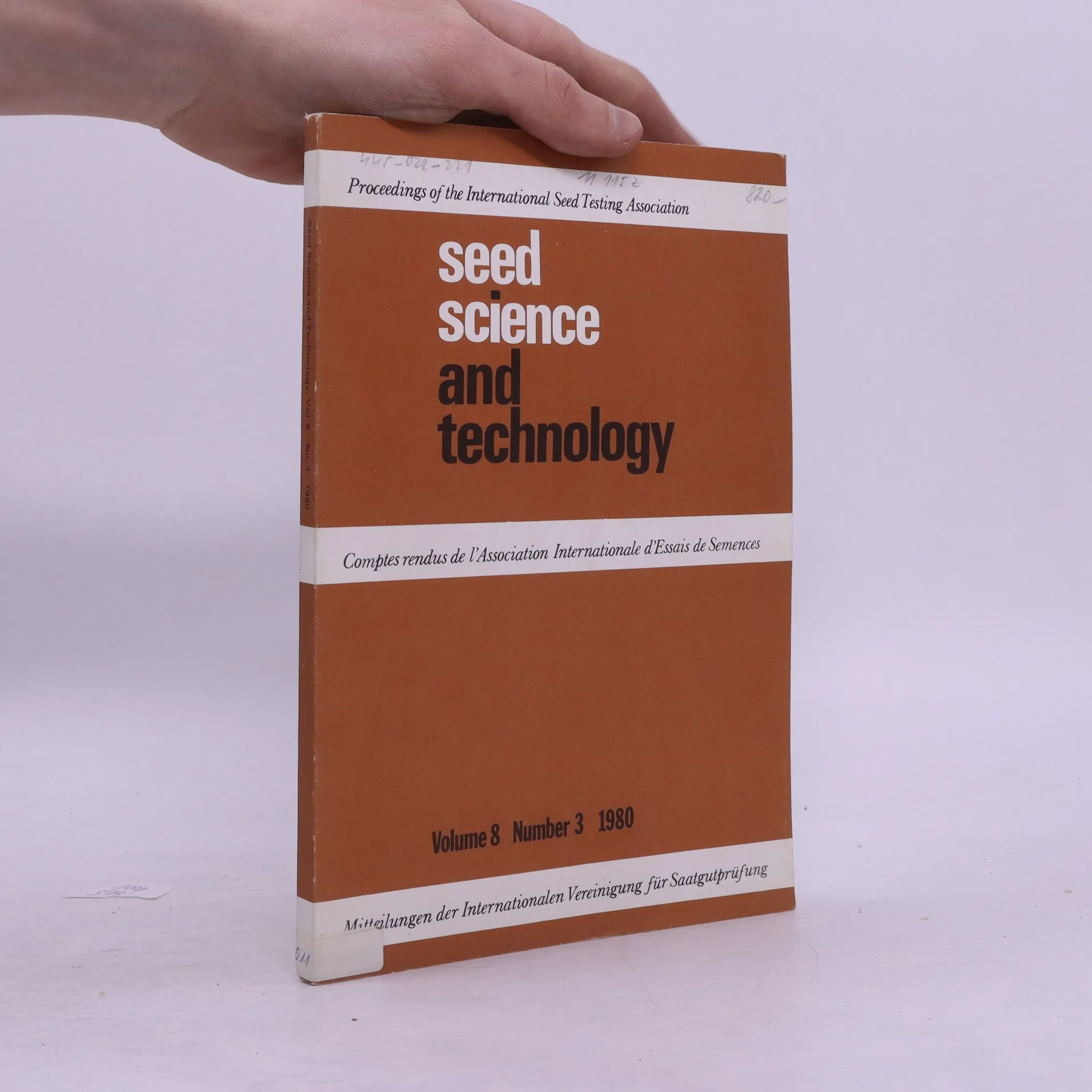 Seed Science and Technology. Volume 8. Number 3. 1980, AA.VV.
