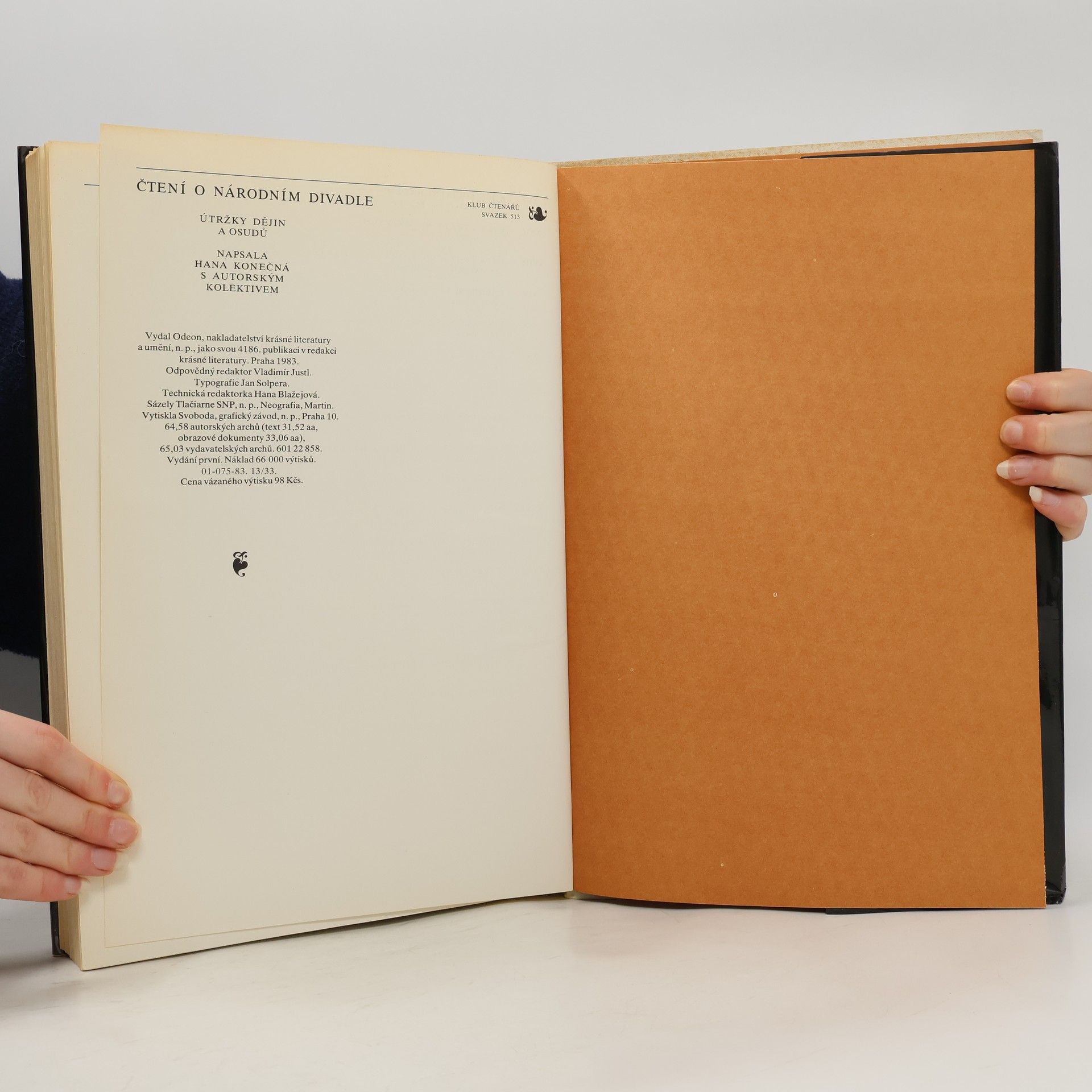 Útržky dějin a osudů. Hana Konečná [i.e. Jan Kopecký] s autorským kolektivem. Skutečným autorem je Jan Kopecký, který v době normalizace nesměl publikovat, své jméno mu pro tuto publikaci propůjčila Hana Konečná (viz. Databáze Národní knihovny ČR a Informační systém abART - full verze)Spoluatoři: Ljuba Klosová (kapitola 11), Jaromír Paclt, Věra Ptáčková (kapitola 27), Ivana Vadlejchová, ilustrace, portréty, faksimile - Jaroslav Krejčí, kalendárium - Jindřich Černý. Obsahuje bibliografii, bibliografické odkazy a rejstřík Formát 340 x 230 mm