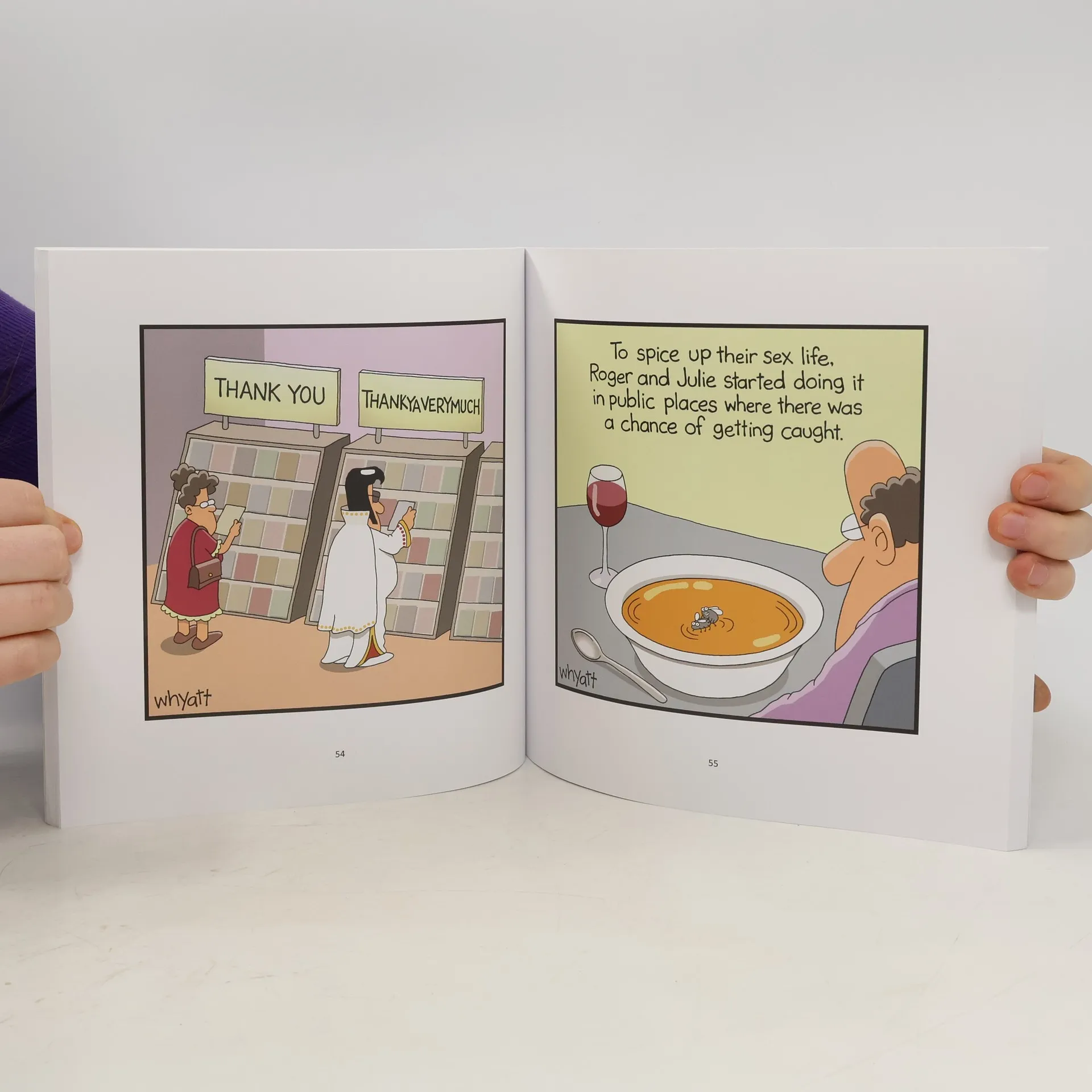 A collection of Whyatt's single-panel cartoons, some of which have appeared on greeting cards and others that are from his website