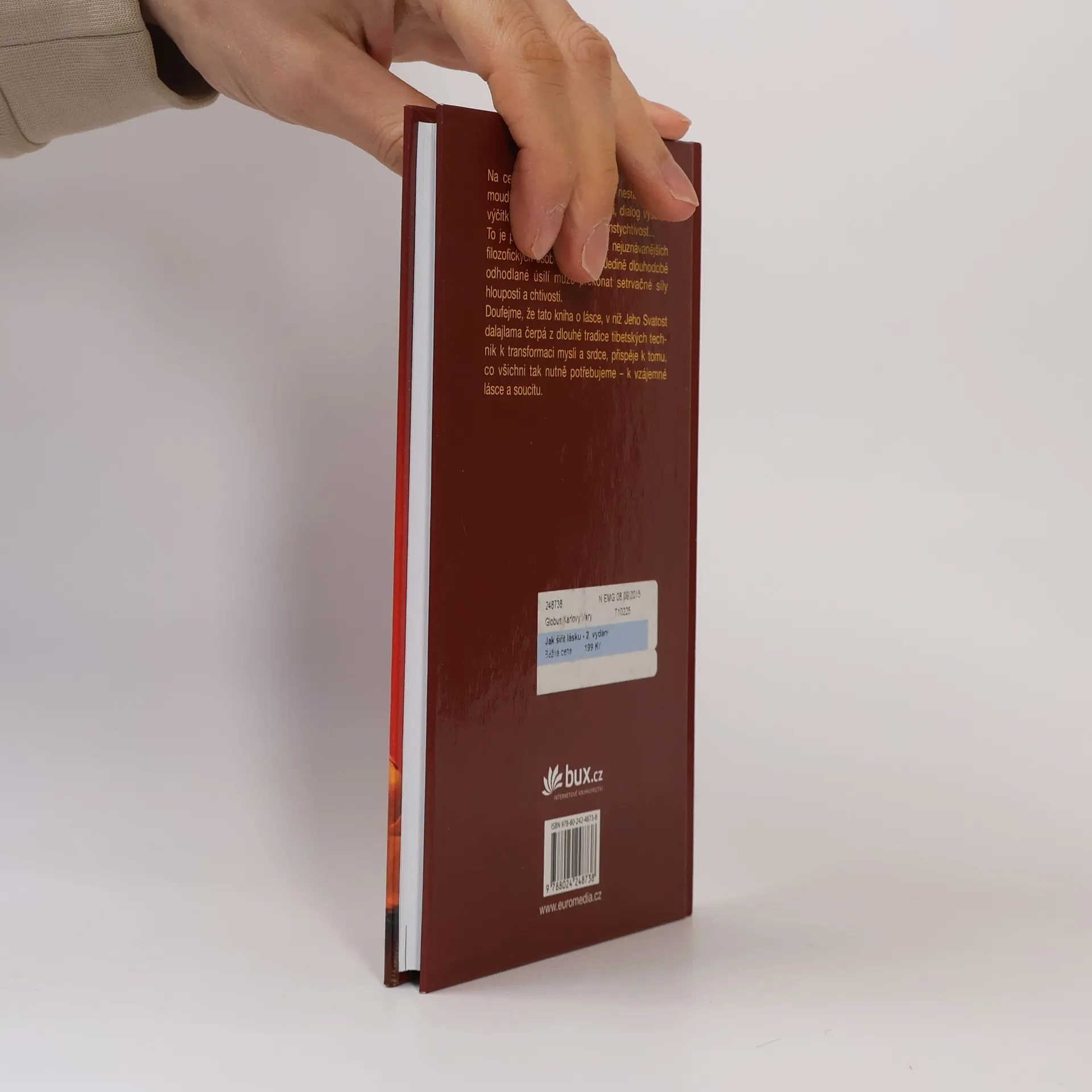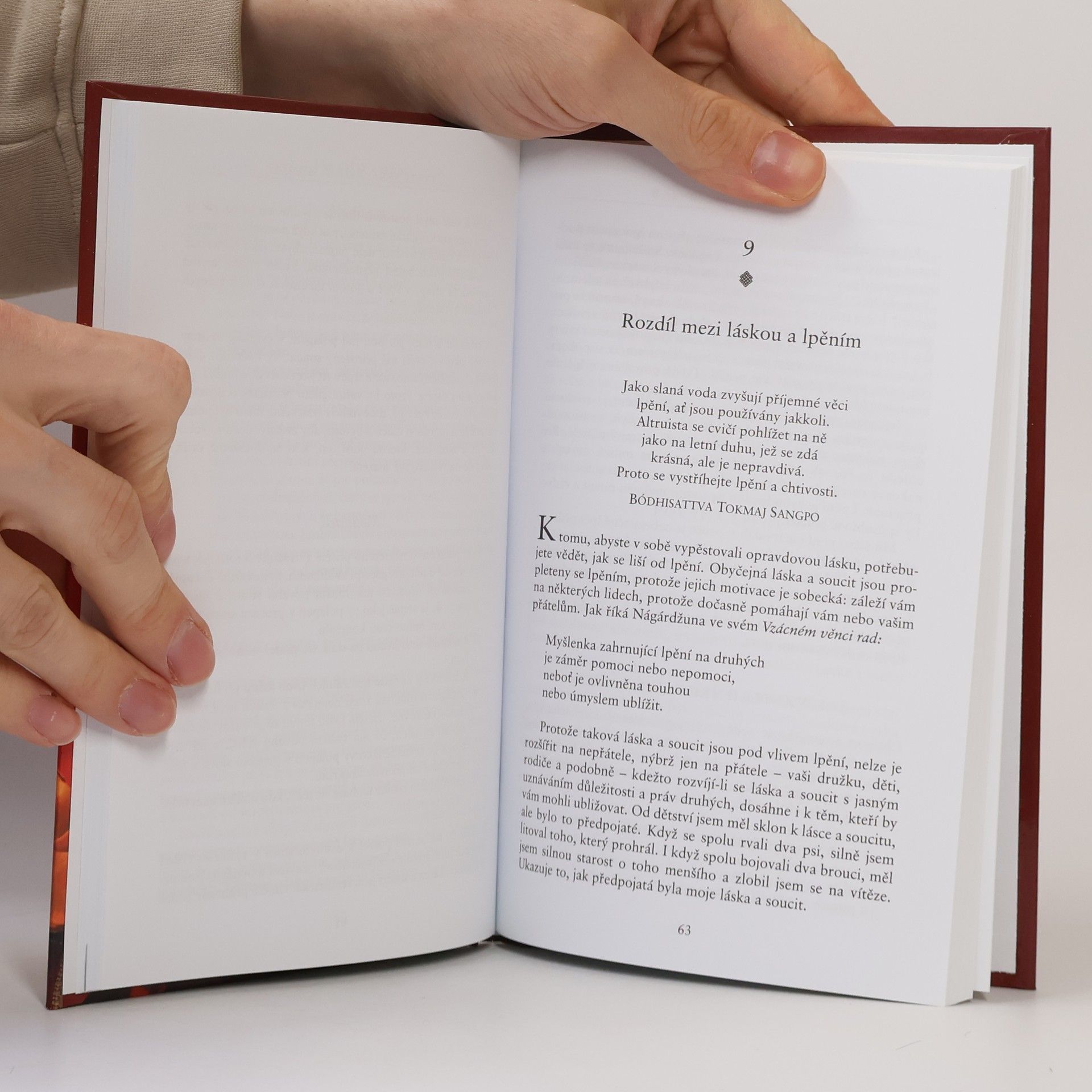 Tato kniha o nezbytné lásce, v níž Jeho Svatost dalajlama čerpá z dlouhé tradice tibetských technik k transformaci mysli a srdce, nepochybně přispěje k tomu, co všichni nutně potřebujeme – ke vzrůstu vzájemné soucitnosti. Je žádoucí, aby na celém světě láska rozpustila nesnášenlivost, moudrost zvítězila nad nevědomostí, koordinovaný aktivismus nahradil pasivitu zoufalství, dialog vystřídal vyčítání a spravedlnost odstranila pomstychtivost...