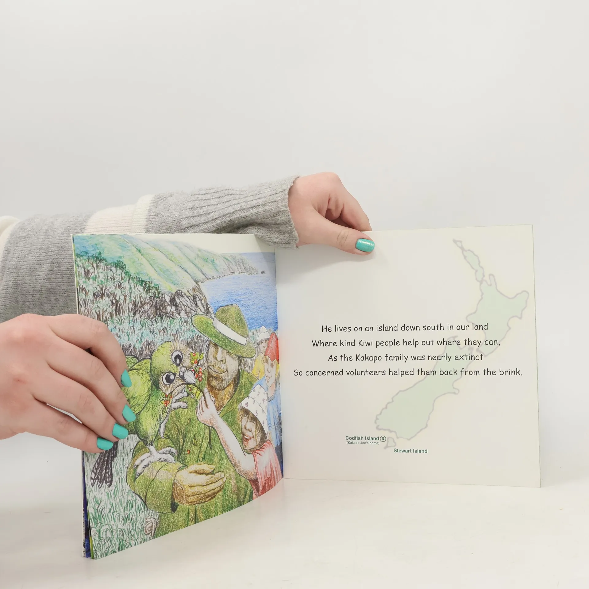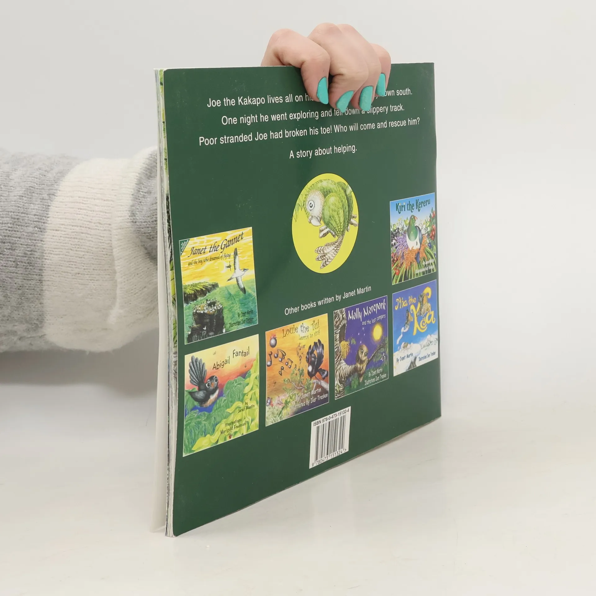 Joe the kakapo lives all on his own on an island way down south in New Zealand. One night he went exploring and fell down a slippery track. Poor stranded Joe had broken his toe! Who will come and rescue him? A rhyminc picture book about helping.