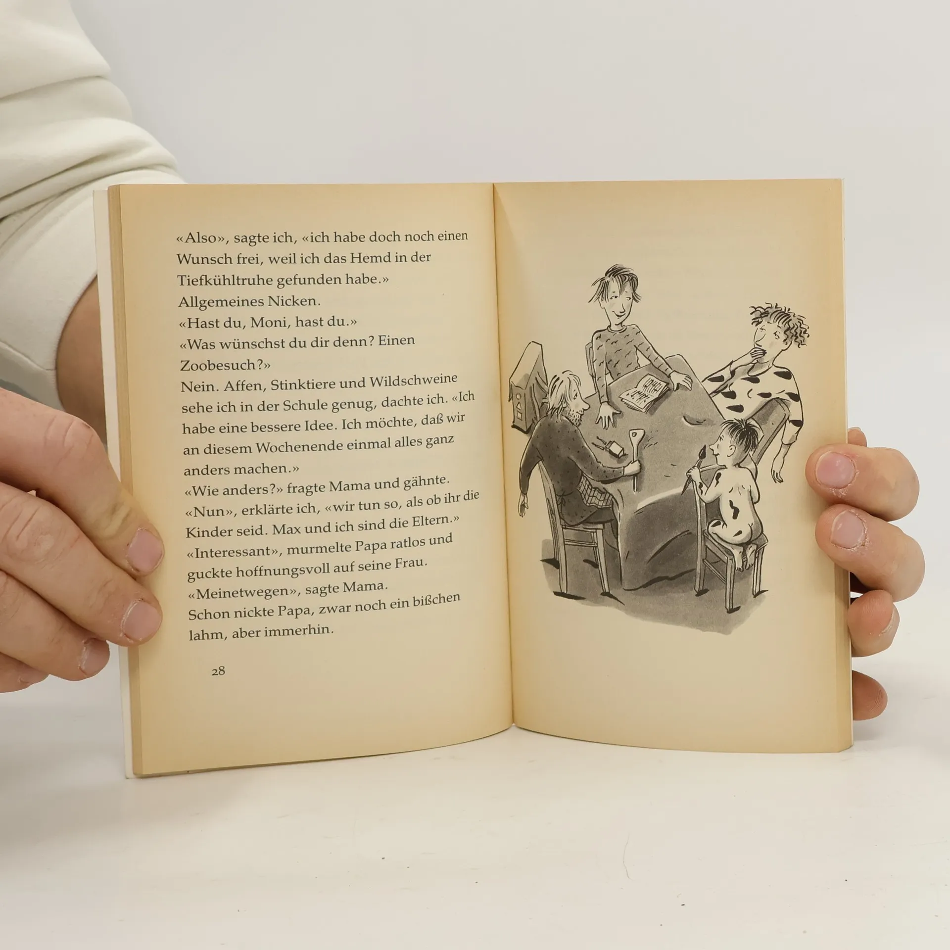 Moni und ihr kleiner Bruder Max tauschen mit den Eltern die Rollen. Das führt zu allerlei komischen Situationen.