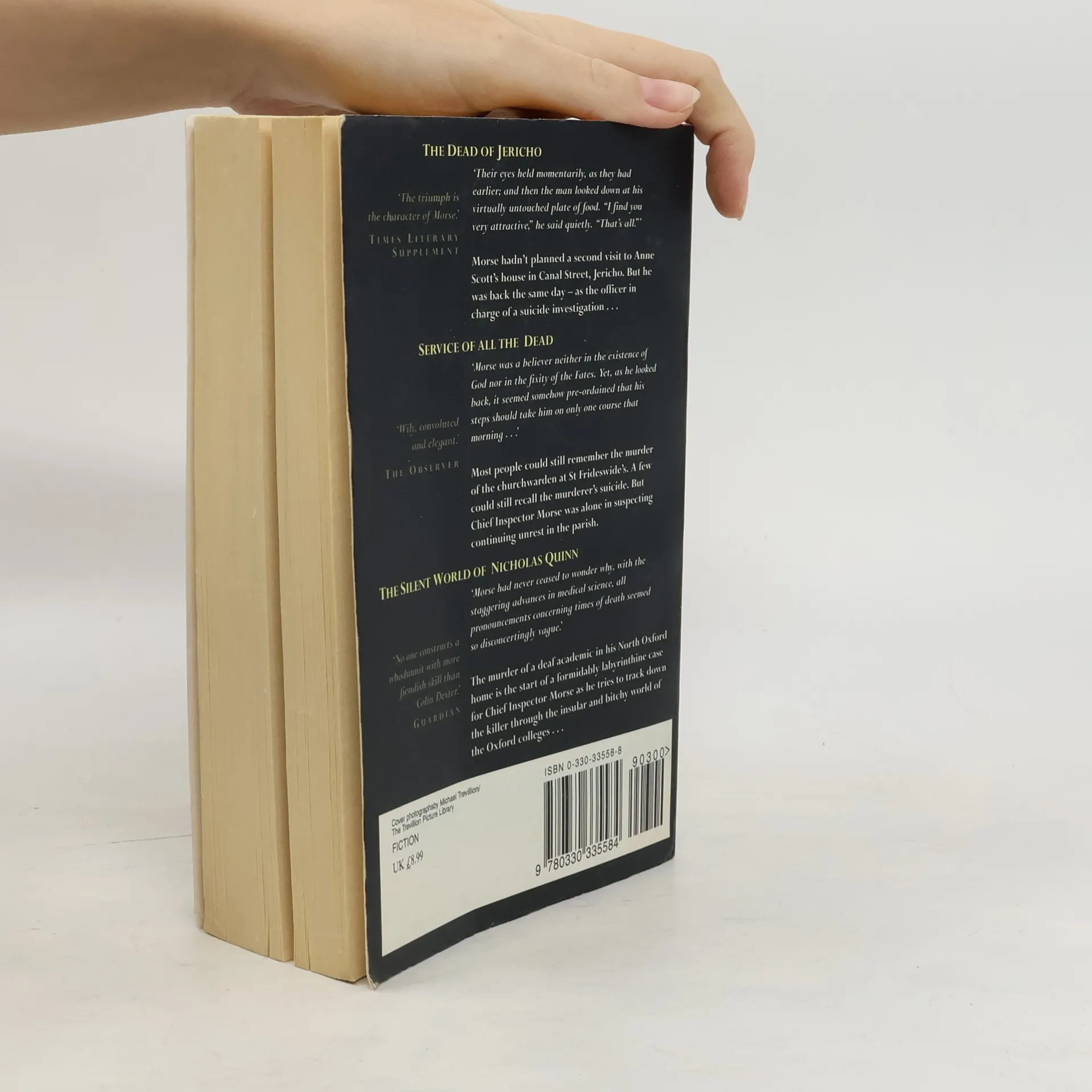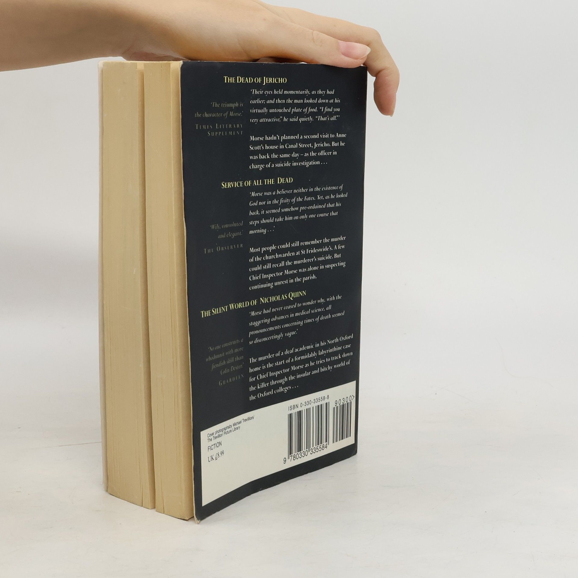 The Dead of Jericho is a work of English detective fiction by Colin Dexter, the fifth novel of the Inspector Morse series, which was subsequently the first of a highly successful series of television adaptations of the novels. Service of All the Dead is a crime novel by Colin Dexter, the fourth novel in Inspector Morse series. The Silent World of Nicholas Quinn is a crime novel by Colin Dexter, the third novel in Inspector Morse series