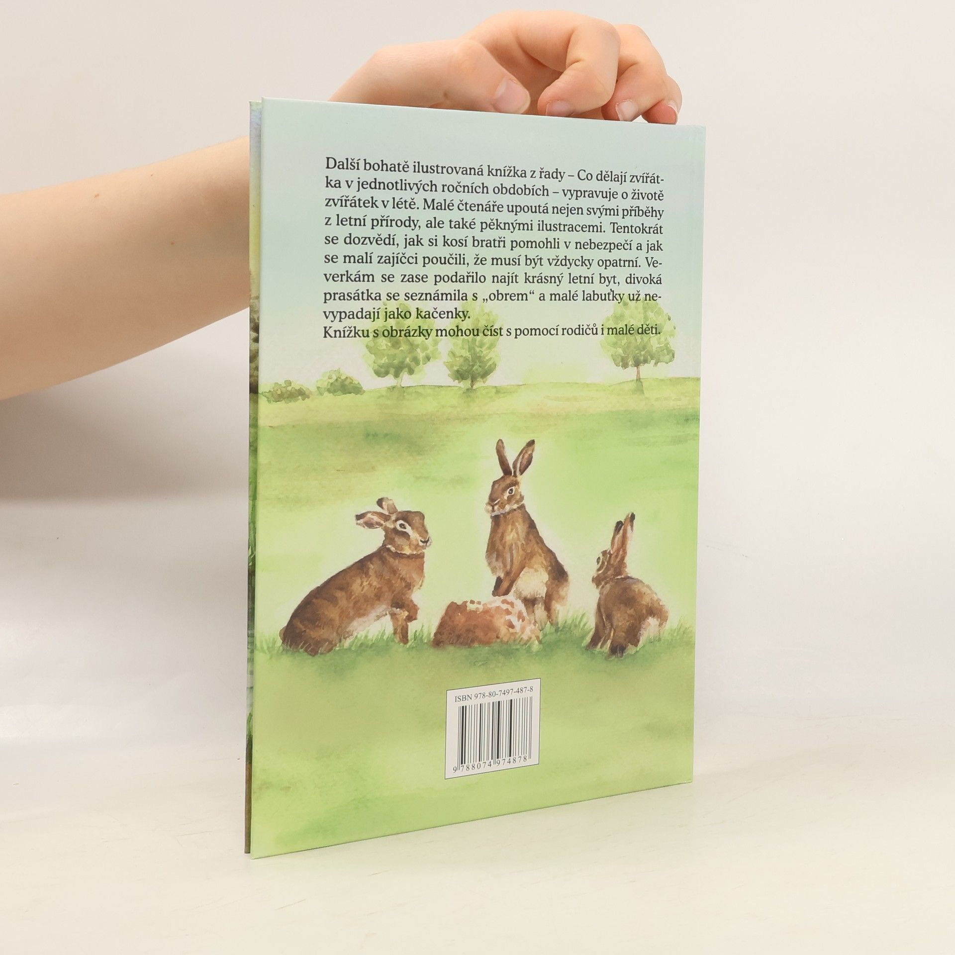 Další bohatě ilustrovaná knížka z řady - Co dělají zvířátka v jednotlivých ročních obdobích - vypravuje o životě zvířátek v létě. Malé čtenáře upoutá nejen svými příběhy z letní přírody, ale také pěknými ilustracemi. Tentokrát se dozvědí, jak si kosí bratři pomohli v nebezpečí a jak se malí zajíčci poučili, že musí být vždycky opatrní. Veverkám se zase podařilo najít krásný letní byt, divoká prasátka se seznámila s "obrem" a malé labuťky už nevypadají jako kačenky. Knížku s obrázky mohou číst s pomocí rodičů i malé děti.