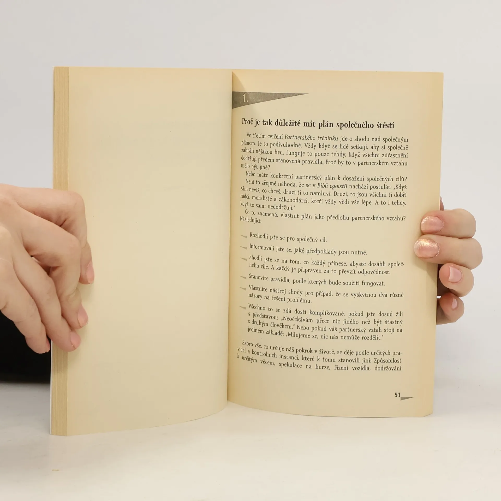 Autor vychází z předpokladu, že "egoisté jsou lepší životní partneři než ti, kteří věčně nevědí, co chtějí". Jeho kniha není lehkou četbou, ale spíše řadou rad a podnětů k zamyšlení. Ty mají čtenáři pomoci ne stát se skutečným "egoistou", ale spíše člověkem, který vidí věci realisticky, ví co chce a spolu s přijímáním výhod vztahu je za něj ochoten nést i zodpovědnost.