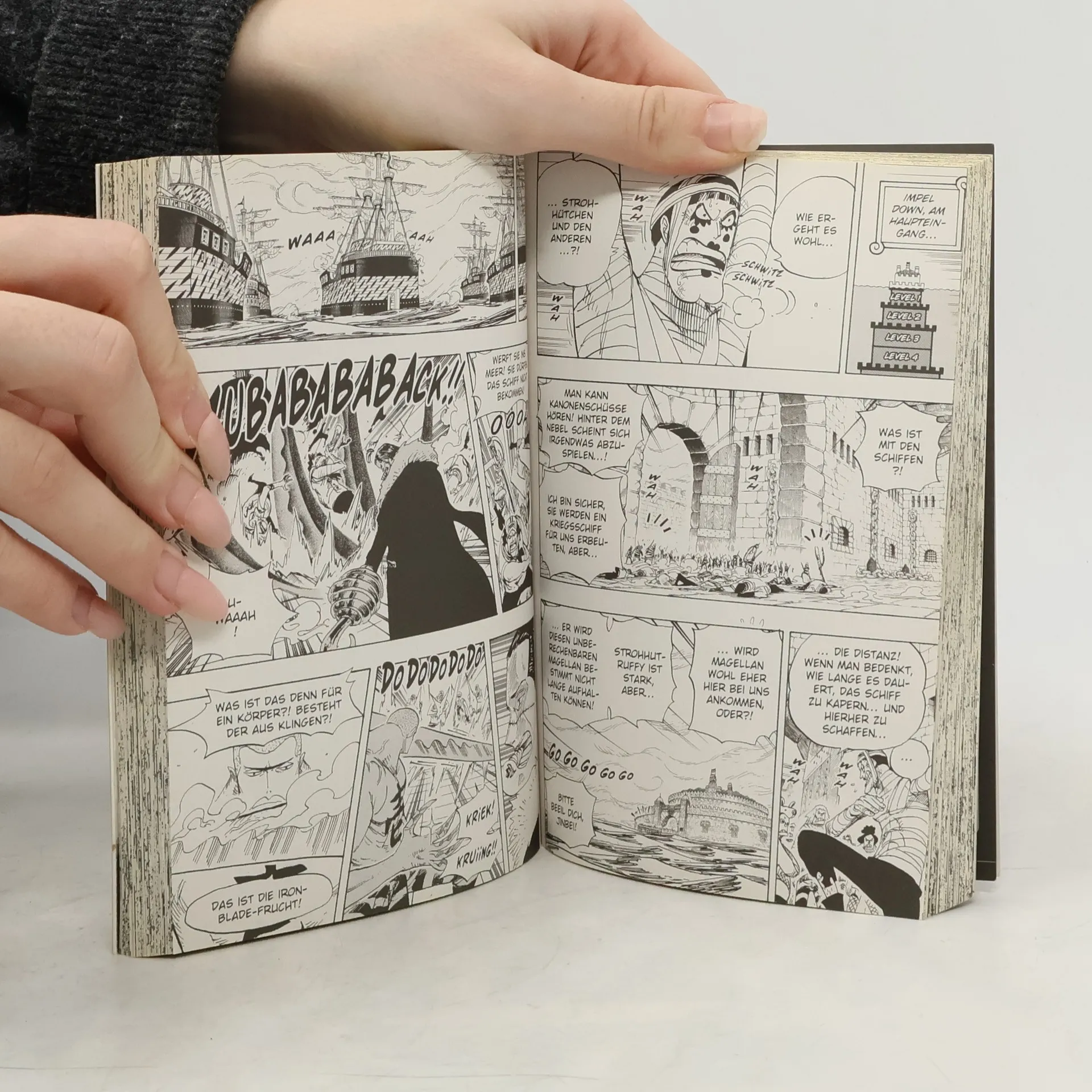 Der beliebteste Manga der Welt! Erlebe die Geschichte des zukünftigen Königs der Piraten in einer unvergleichlichen Geschichte voller Action, Abenteuer, Dramatik, Freundschaft und Humor. Mit über 500 Millionen verkauften Bänden weltweit ist One Piece die meistverkaufte Mangaserie der Geschichte! In Impel Down ist die Hölle los. Ruffy hat mit seinem Einbruch einen Aufstand ausgelöst, wie ihn das Tiefsee-Gefängnis noch nie gesehen hat. Doch der teuflische Gefängnisdirektor Magellan hat unseren Gummi-Piraten mit seiner Giftattacke zu lange aufgehalten: Ruffys Bruder Ace wird bereits zu seiner bevorstehenden Hinrichtung abtransportiert. Und draußen auf dem Meer braut sich bereits neuer Ärger zusammen, der manchen Gefangenen wünschen lässt, er hätte die Hölle von Impel Down niemals verlassen... Für Fans von Naruto, Dragon Ball, My Hero Academia und Fairy Tail!