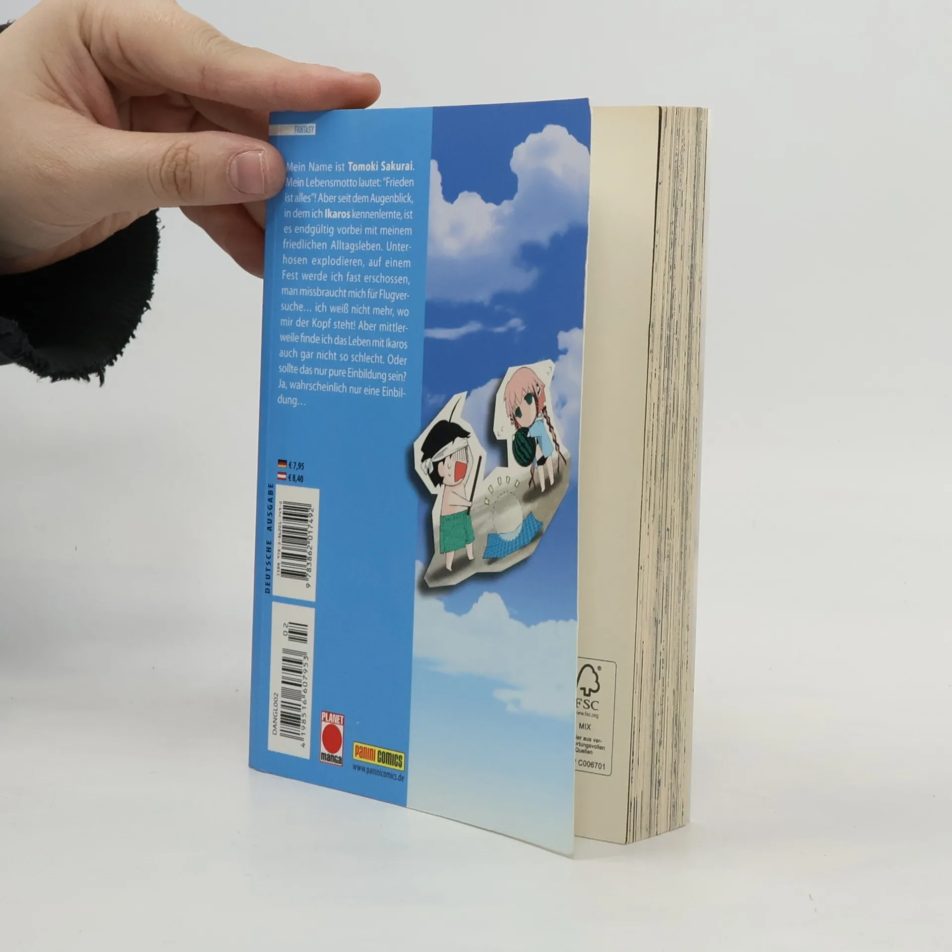 Mein Name ist Tomoki Sakurai. Mein Lebensmotto lautet: „Frieden ist alles“! Aber seit dem Augenblick, in dem ich Ikaros kennenlernte, ist es endgültig vorbei mit meinem friedlichen Alltagsleben. Unterhosen explodieren, auf einem Fest werde ich fast erschossen, man missbraucht mich für Flugversuche... ich weiß nicht mehr, wo mir der Kopf steht. Aber mittlerweile finde ich das Leben mit Ikaros auch gar nicht so schlecht. Oder sollte das nur pure Einbildung sein? Ja, wahrscheinlich nur eine Einbildung...