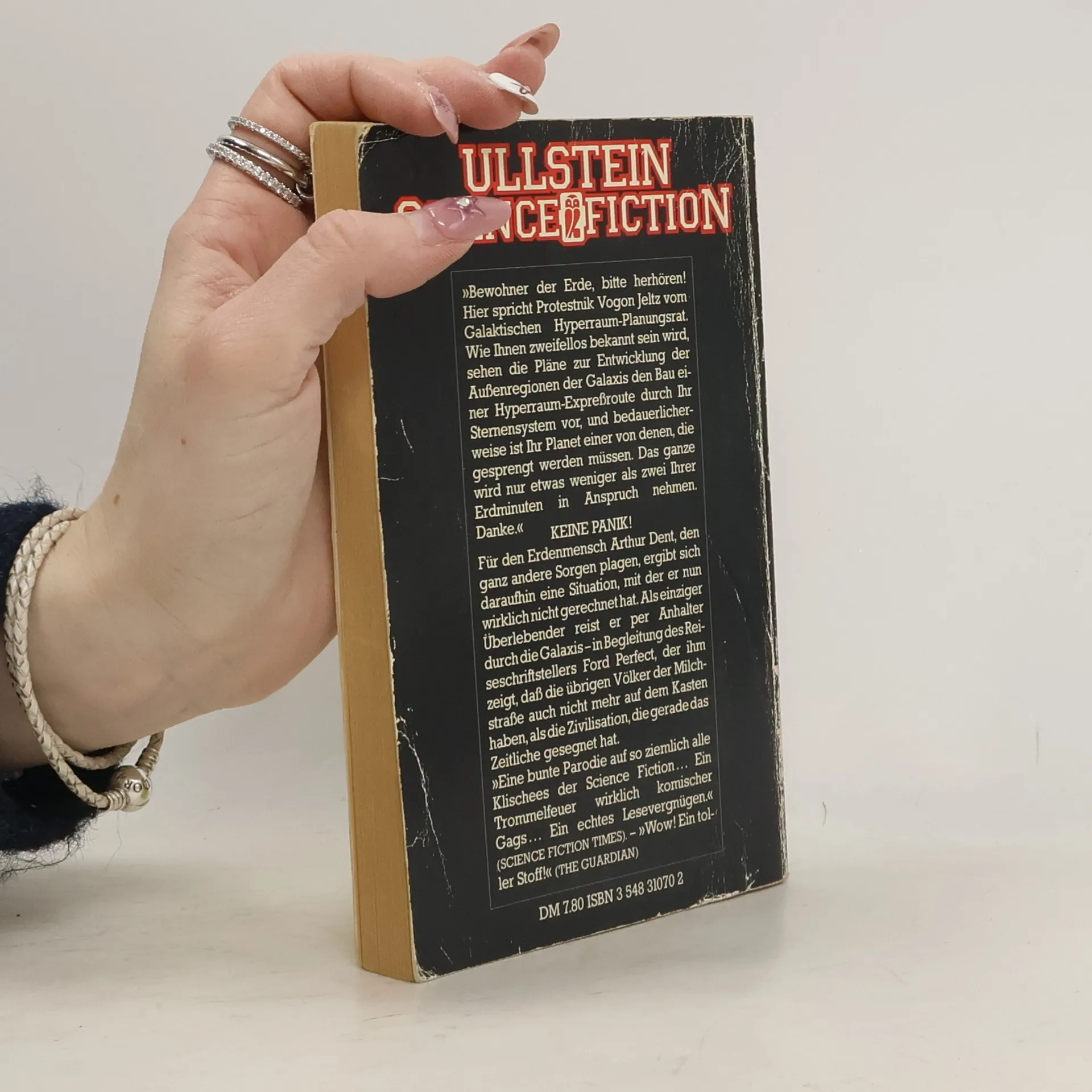 Vor 30 Jahren wurde von einem der größten Verlage Ursa Minors (und der Erde) das bemerkenswerteste Buch, das je veröffentlicht wurde, der Menschheit zugänglich gemacht: Per Anhalter durch die Galaxis. Für Arthur Dent ist es ein ganz normaler Donnerstag, bis sein Haus von Planierraupen niedergewalzt wird. Kurz darauf wird allerdings auch die gesamte Erde von einem vogonischen Bautrupp plattgemacht, weil sie einer Hyperraum-Umgehungsstraße weichen muss. Aber da hat sich Arthurs bester Freund schon längst als Alien entpuppt, und sie sausen durchs Weltall mit nichts als ihren Badetüchern und einem harmlos wirkenden Buch, auf dem in großen, freundlichen Buchstaben »KEINE PANIK« steht. Und dabei hat das Wochenende gerade erst angefangen…