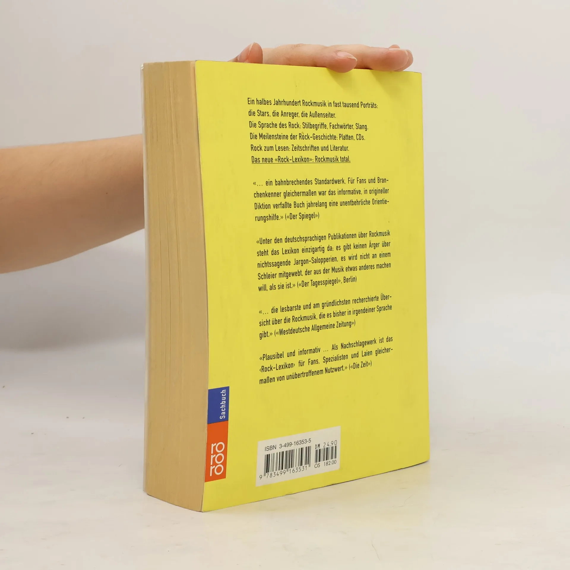 Ein halbes Jahrhundert Rockmusik in fast tausend Porträts: die Stars, die Anreger, die Außenseiter. Die Sprache des Rock: Stilbegriffe, Fachwörter, Slang. Rock zum Lesen: Zeitschriften und Literatur. Das neue „Rock-Lexikon“: Rockmusik total.
