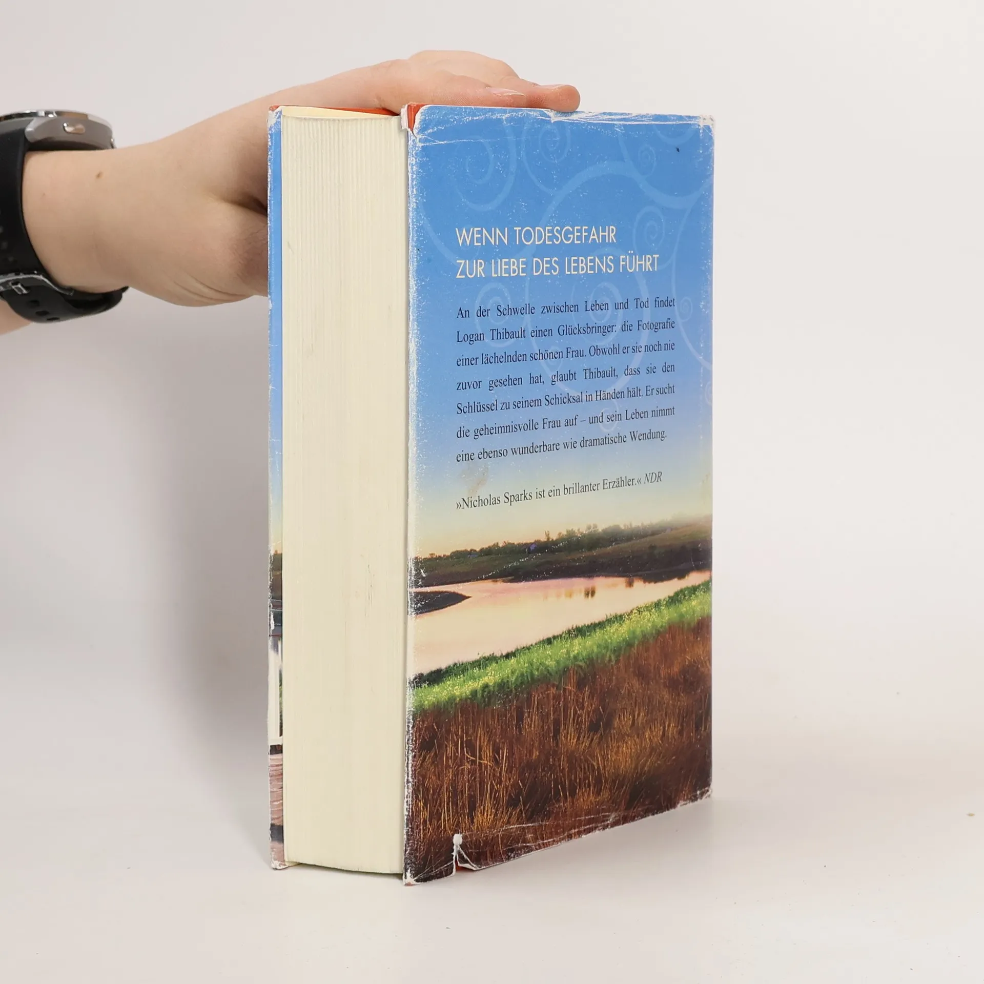 Wenn Todesgefahr zur Liebe des Lebens führt Auf der Schwelle zwischen Leben und Tod findet Logan Thibault einen Glücksbringer: die Fotografie einer lächelnden schönen Frau. Obwohl er sie noch nie zuvor gesehen hat, ist Logan überzeugt davon, dass sie den Schlüssel zu seinem Schicksal in Händen hält. Er sucht die geheimnisvolle Frau auf – und sein Leben nimmt eine ebenso wunderbare wie dramatische Wendung. Kann es wirklich so etwas wie einen Glücksbringer geben? Logan Thibault würde so einen Gedanken weit von sich weisen – bis er selbst, in höchster Gefahr, das Foto einer schönen Frau findet. Er nimmt es an sich und fühlt sich von diesem Moment an auf wunderbare Weise beschützt. Unversehrt kehrt er aus dem Krieg zurück. Er macht sich auf die Suche quer durch ganz Amerika, um die Frau zu finden. Und es gelingt ihm tatsächlich: In einem kleinen Örtchen in North Carolina steht er plötzlich Elizabeth gegenüber. Um ihr nahe zu sein, lässt er sich als Aushilfe in der Hundezucht ihrer Großmutter einstellen. Und schon bald verliebt er sich hoffnungslos in Elizabeth. Sie hat jedoch große Vorbehalte gegen diesen Fremden, der sie so komisch anstarrt und sie von irgendwoher zu kennen scheint. Nur langsam öffnet sie sich ihm – und Logan beginnt zu erahnen, dass die Schatten der Vergangenheit ihre aufkeimende Liebe zerstören könnten.