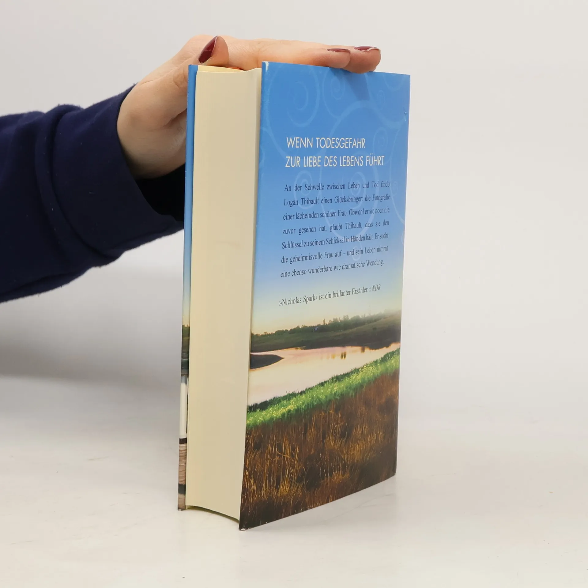 Wenn Todesgefahr zur Liebe des Lebens führt Auf der Schwelle zwischen Leben und Tod findet Logan Thibault einen Glücksbringer: die Fotografie einer lächelnden schönen Frau. Obwohl er sie noch nie zuvor gesehen hat, ist Logan überzeugt davon, dass sie den Schlüssel zu seinem Schicksal in Händen hält. Er sucht die geheimnisvolle Frau auf – und sein Leben nimmt eine ebenso wunderbare wie dramatische Wendung. Kann es wirklich so etwas wie einen Glücksbringer geben? Logan Thibault würde so einen Gedanken weit von sich weisen – bis er selbst, in höchster Gefahr, das Foto einer schönen Frau findet. Er nimmt es an sich und fühlt sich von diesem Moment an auf wunderbare Weise beschützt. Unversehrt kehrt er aus dem Krieg zurück. Er macht sich auf die Suche quer durch ganz Amerika, um die Frau zu finden. Und es gelingt ihm tatsächlich: In einem kleinen Örtchen in North Carolina steht er plötzlich Elizabeth gegenüber. Um ihr nahe zu sein, lässt er sich als Aushilfe in der Hundezucht ihrer Großmutter einstellen. Und schon bald verliebt er sich hoffnungslos in Elizabeth. Sie hat jedoch große Vorbehalte gegen diesen Fremden, der sie so komisch anstarrt und sie von irgendwoher zu kennen scheint. Nur langsam öffnet sie sich ihm – und Logan beginnt zu erahnen, dass die Schatten der Vergangenheit ihre aufkeimende Liebe zerstören könnten.