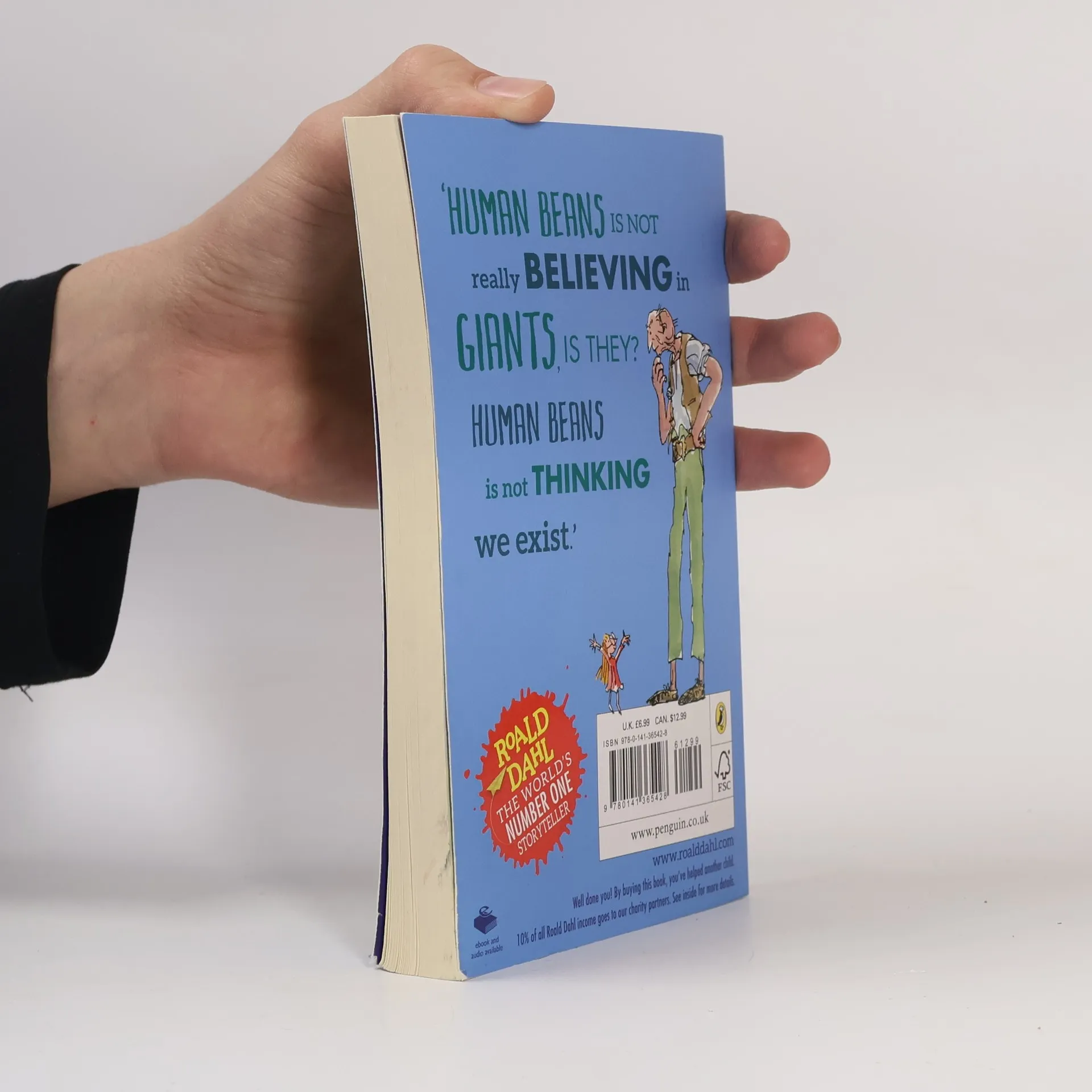 Phizzwhizzing new cover look and branding for the World's NUMBER ONE Storyteller On a dark, silvery moonlit night, Sophie is snatched from her bed by a giant. Luckily it is the Big Friendly Giant, the BFG, who only eats snozzcumbers and glugs frobscottle. But there are other giants in Giant Country. Fifty foot brutes who gallop far and wide every night to find human beans to eat. Can Sophie and her friend the BFG stop them? Let's hope so - otherwise the next child a gruesome giant guzzles could be YOU. Also look out for new Roald Dahl apps in the App store and Google Play- including the disgusting TWIT OR MISS and HOUSE OF TWITS inspired by the revolting Twits.