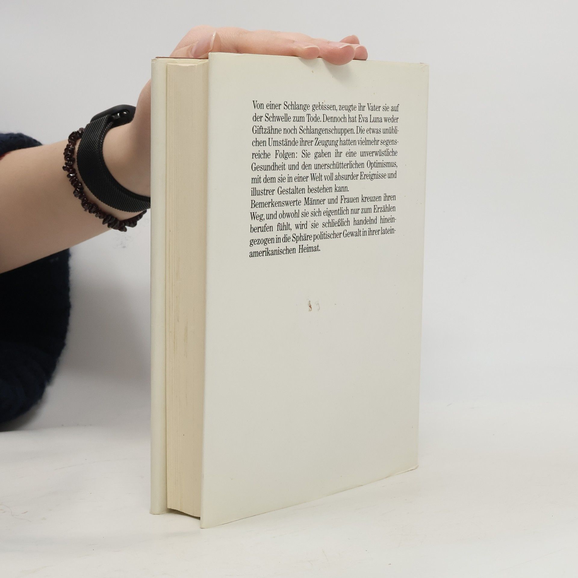 Das Waisenkind Eva Luna, von seinen Eltern auf äußerst ungewöhnliche Weise gezeugt, ist eine Geschichtenerzählerin wie Scheherazade. Und wie diese rettet auch sie mit ihren Geschichten Leben und erschafft sich eine eigene, bessere Welt. Die Menschen, auf die sie als Mädchen und später als junge Frau trifft, sind gleichermaßen fasziniert und auch teilweise erschrocken von diesem besonderen Menschen, dem noch die härteste Realität scheinbar nichts anzuhaben vermag. Eva, die immer noch mit ihrer toten Mutter kommuniziert, hat ein großes Herz, liebt ohne Vorbehalte und erfreut die Menschen, die ihr wichtig sind, mit ihren faszinierenden, verworrenen und unglaublichen Geschichten. Egal ob ihre Patin, ihre große Liebe Huberto Naranjo, die adoptierte Großmutter Elvira, Melecio, der so gerne eine Frau wäre, ihr Ziehvater Riad Halabi, der von einer Hasenscharte entstellt ist oder Rolf Carlé - sie alle halten Einzug in Evas Herz und in ihre Gedankenwelt, die so schön ist, so voller Phantasie und Erotik, dass es die Menschen zu Tränen rührt. Eva Luna macht ihren Weg, verliebt sich, muss wieder Abschied nehmen, findet verloren Geglaubte wieder und ist trotz aller Widrigkeiten immer voller Lebenslust. Sie wird hineingezogen in die Guerrillabewegung Chiles, steht für ihre Ideale ein und findet am Ende das, auf was sie immer gehofft hat - die Liebe, die ihrem Leben die Erfüllung gibt.