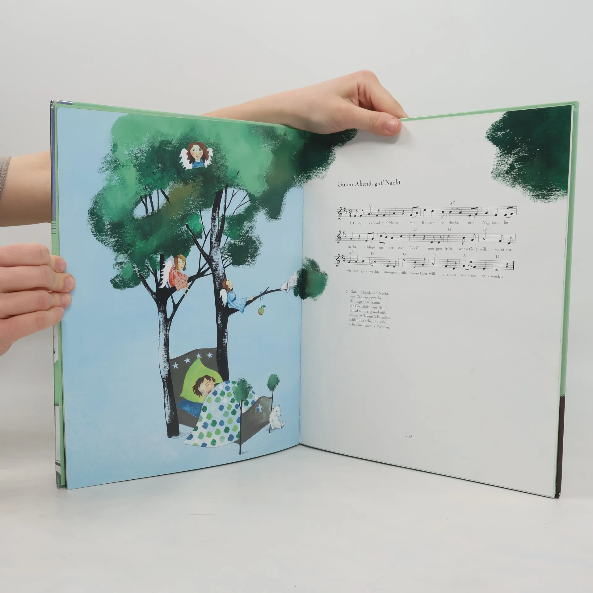 Eine stimmungsvoll illustrierte Sammlung von 14 meist bekannten Wiegen- und Schlafliedern. Ab 6.