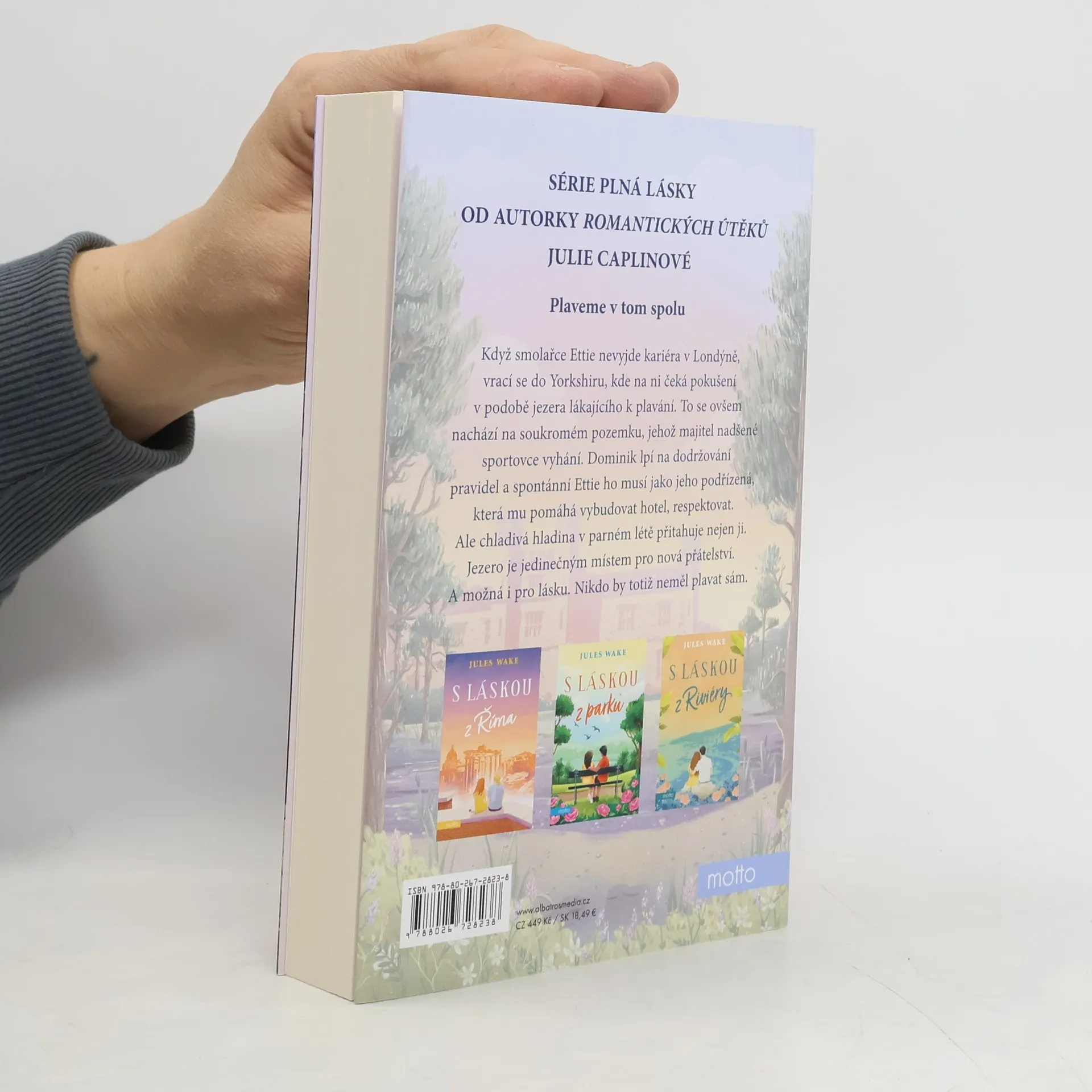 Román o lásce nejen k plavání od autorky známé jako Julie Caplinová Jules Wake, známá také jako Julie Caplinová, tentokrát vypráví o lásce, která nedbá varování, a především o plavání a jeho blahodárných účincích na tělo i mysl. Když smolařce Ettie nevyjde kariéra v Londýně, vrací se do Yorkshiru, kde na ni čeká pokušení v podobě jezera ve zdánlivě opuštěném zámeckém parku. To se ovšem nachází na soukromém pozemku, jehož majitel nadšené sportovce vyhání. Dominik lpí na dodržování pravidel a spontánní Ettie ho musí jako jeho podřízená, která mu pomáhá vybudovat hotel, respektovat. Ale chladivá hladina v parném létě přitahuje nejen ji. Jezero je jedinečným místem pro nová přátelství. A možná i pro lásku. Nikdo by totiž neměl plavat sám.