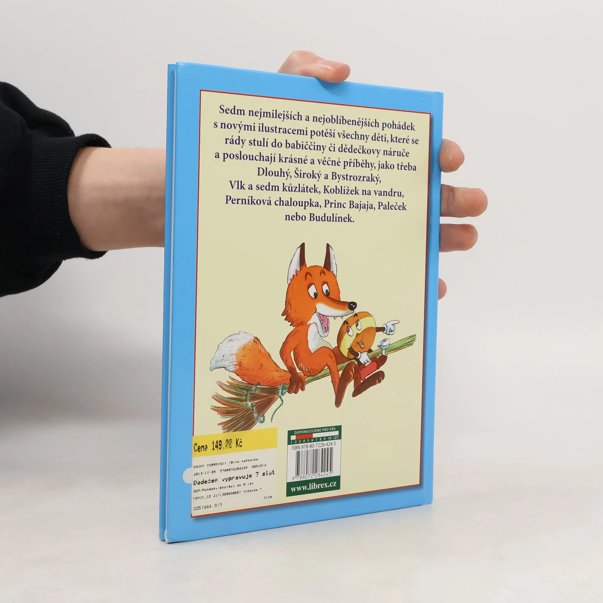 Sedm nejmilejších a nejoblíbenějších pohádek s novými ilustracemi potěší všechny děti, které se rády stulí do babiččiny či dědečkovy náruče a poslouchají krásné a věčné příběhy, jako třeba Dlouhý, Široký a Bystrozraký, Vlk a sedm kůzlátek, Koblížek na vandru, Perníková chaloupka, Princ Bajaja, Paleček nebo Budulínek.