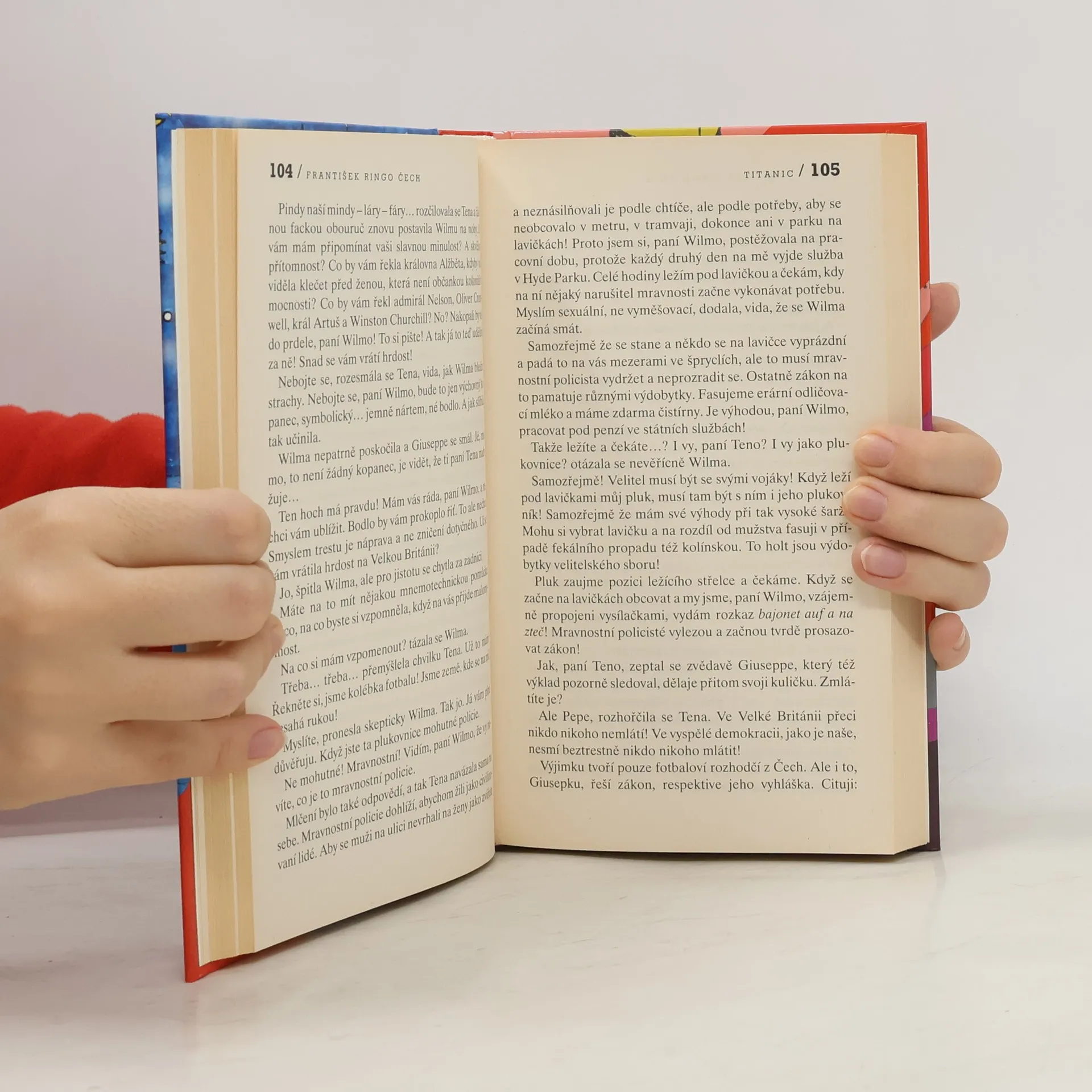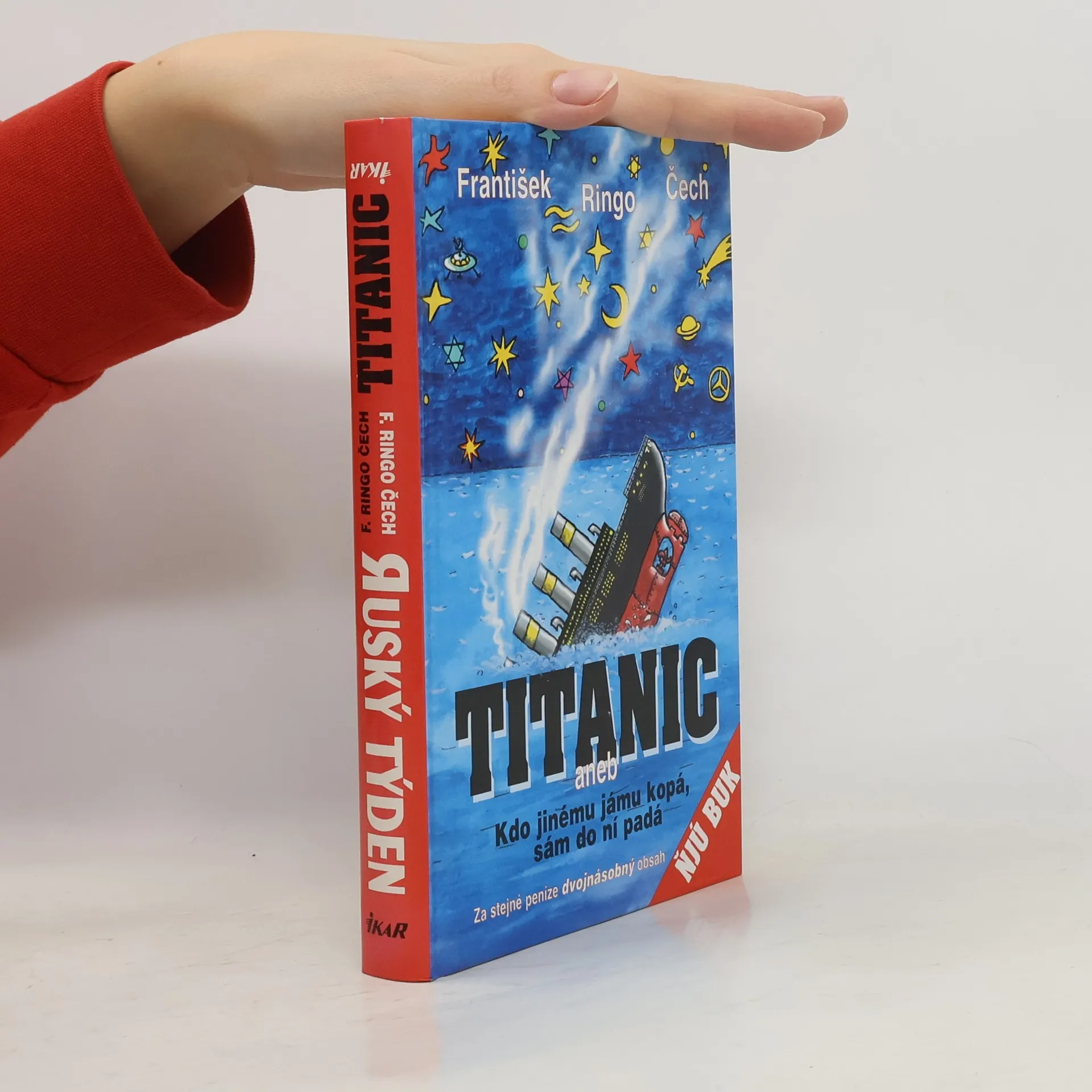 Mezi spoustou historických knih, fotografických publikací a výpravných filmů, které se věnují tragédii Titaniku, dosud chybělo pojednání z pera nezaujatého, ale o to objektivnějšího autora, jenž dokáže uchopit základní tezi a rozvinout ji způsobem, jaký nemá v literárním světě obdoby. Takovým autorem je bezesporu František Ringo Čech, kulturní divoch a spořádaný otec nového literárního žánru, jemuž dal do vínku název literatura vymyšleného faktu. Jak sám v úvodním slovu připomíná, nestojí již na tomto tvůrčím poli osamoceně. Titanic, poslední Ringovo novorozeně, vás ohromí od samého začátku a vy se od něj nedokážete odtrhnout, protože to, co vám autor šťavnatým jazykem a s invencí sobě vlastní předkládá, jste ani v těch nejbujnějších snech netušili. Aristoteles Chobodydes, kapitán Morgan, hrabě Esterházy, Ti Ti i malý Giuseppe jsou dokonalými protihráči žen, jejichž plnokrevnost by zaručila skvělý chov nejednomu hřebčinci. A vůbec nezáleží na prostoru, který jim autor poskytl, naopak, zhuštěné lidské osudy na pokraji hrozící katastrofy spolu s kořeny pevně zapuštěnými v budoucnosti a imperativem skutečného člověčenství daly vzniknout dílu, jež obohacuje historické prameny a poskytuje čtenáři pocit, že i on se stal součástí jedinečné badatelské expedice. A vzhledem ke známé pravdě, že opakování je matka moudrosti, připojili jsme k novému dílu i notoricky známý Ruský týden. Protože humoru a neotřelého čtení není nikdy dost.