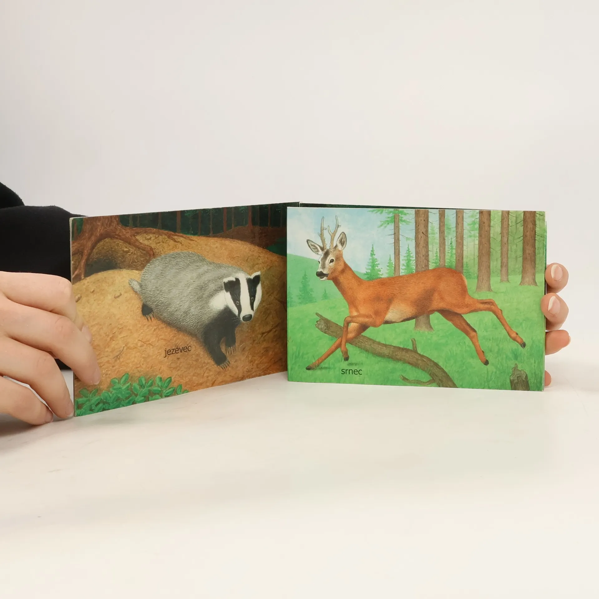 Obrázkové leporelo, ve kterém děti poznávají nejznámější zvířátka v lese.