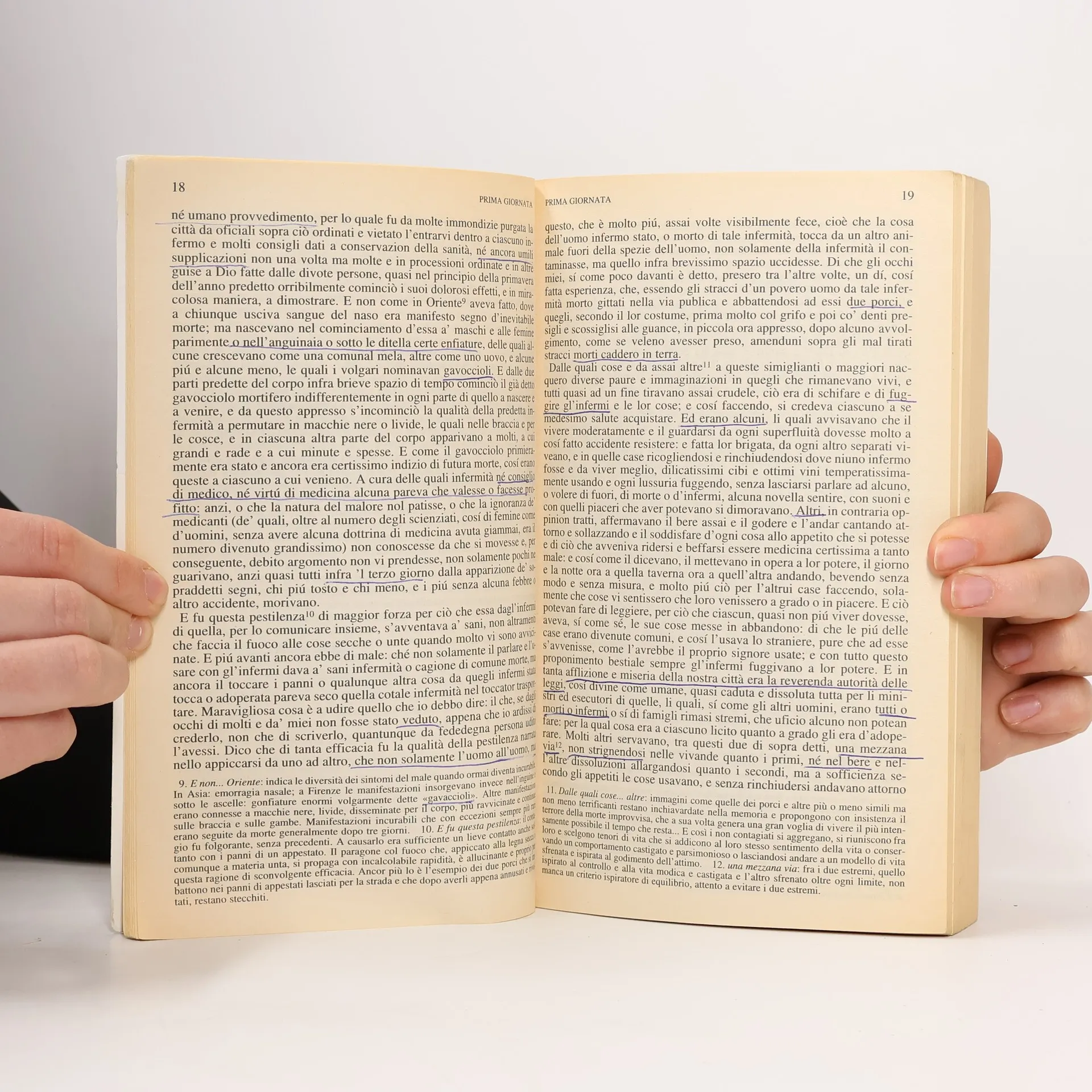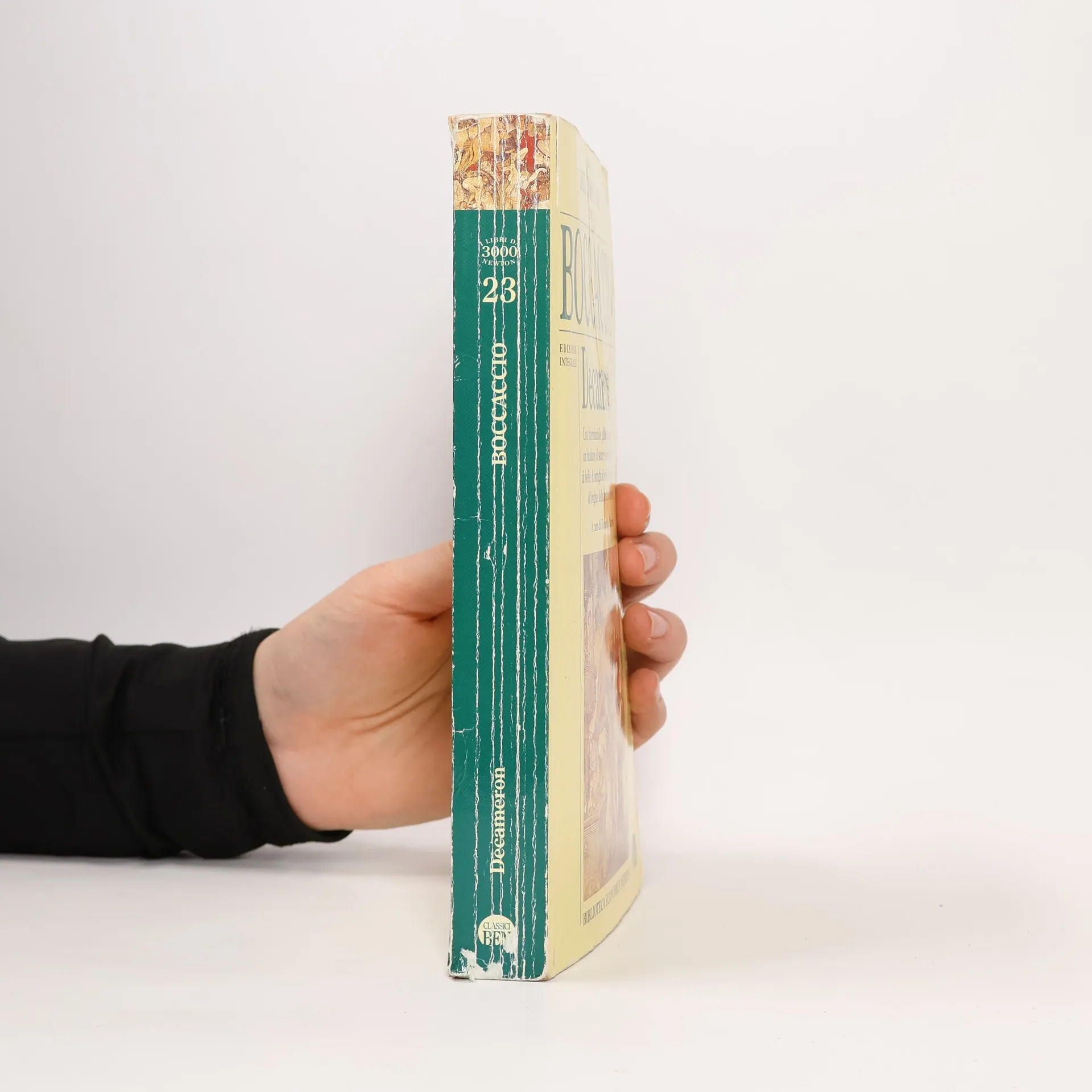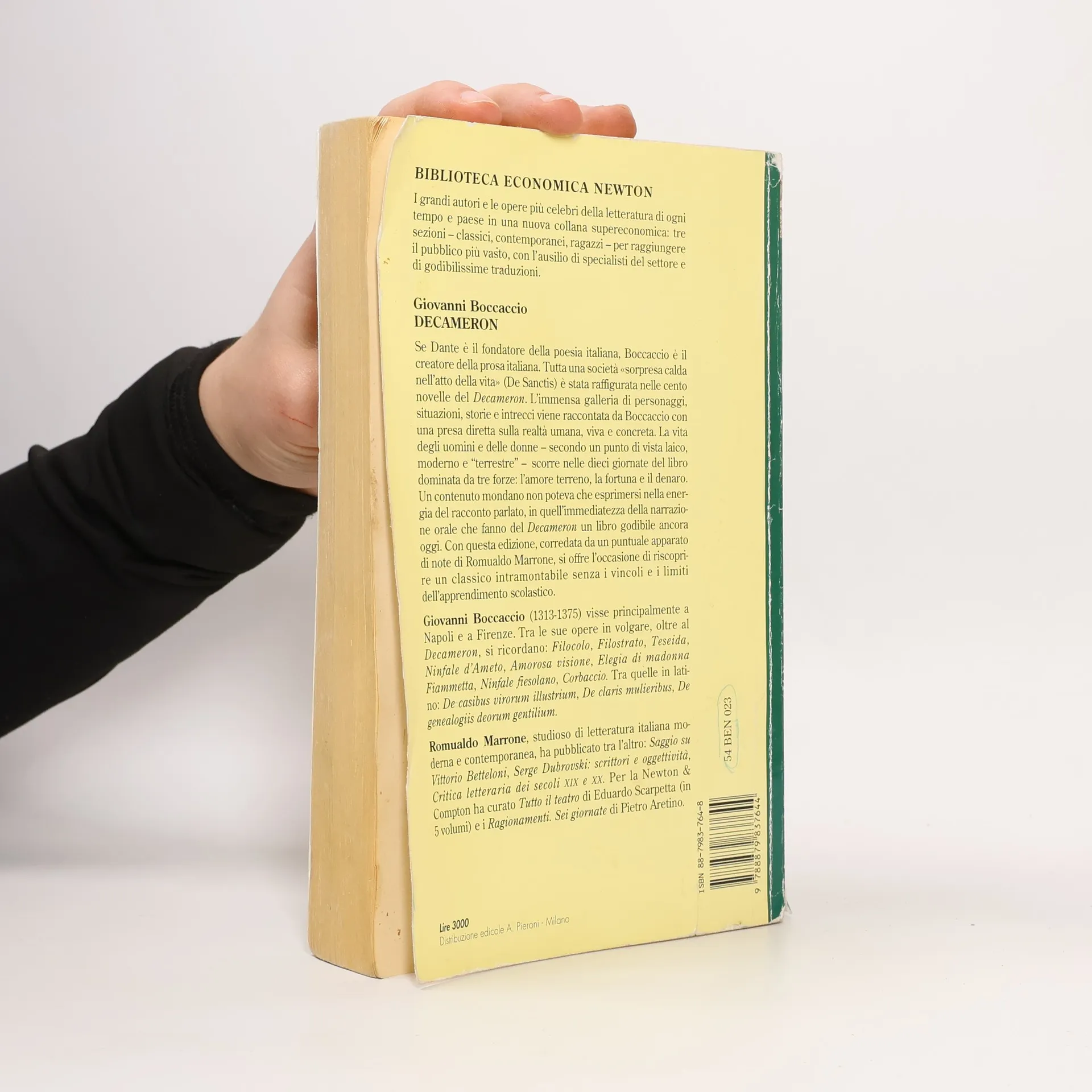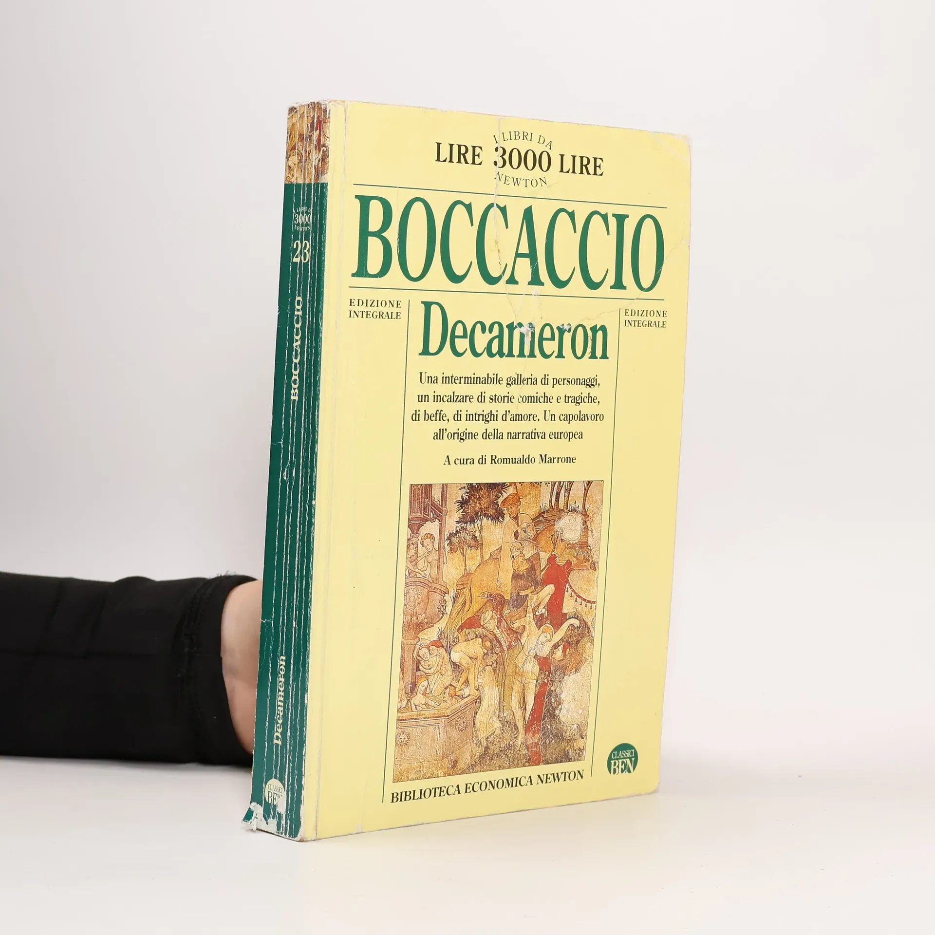 Edizione integrale Se Dante è il fondatore della poesia italiana, Boccaccio è il creatore della prosa italiana. Tutta una società «sorpresa calda nell'atto della vita» (De Sanctis) è stata raffigurata nelle cento novelle del Decameron. L'immensa galleria di personaggi, situazioni, storie e intrecci viene raccontata da Boccaccio con una presa diretta sulla realtà umana, viva e concreta. La vita degli uomini e delle donne - secondo un punto di vista laico, moderno e "terrestre" - scorre nelle dieci giornate del libro dominata da tre forze: l'amore terreno, la fortuna e il denaro. Il contenuto mondano si esprime nell'immediatezza della narrazione orale che fa del Decameron un libro godibile ancora oggi. Questa edizione, corredata da un puntuale apparato di note di Romualdo Marrone, offre l'occasione di riscoprire un classico intramontabile.