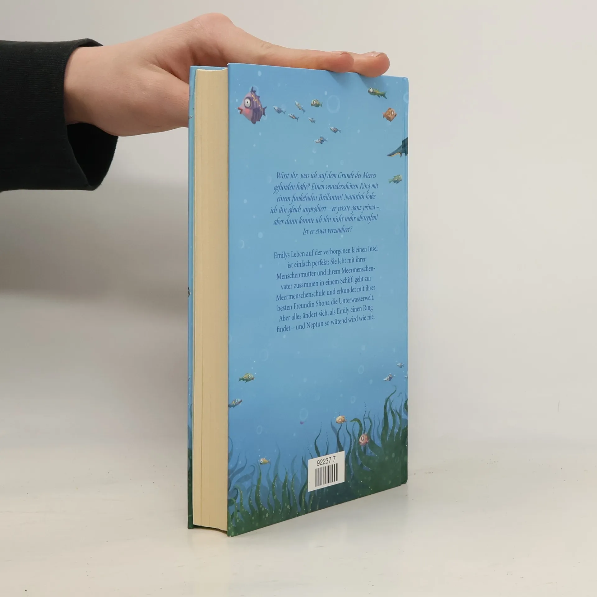 'Wisst ihr, was ich auf dem Grunde des Meeres gefunden habe? Einen wunderschönen Ring mit einem funkelnden Brillanten! Natürlich habe ich ihn gleich anprobiert – er passte ganz prima –, aber dann konnte ich ihn nicht mehr abstreifen! Ist er etwa verzaubert?' Emilys Leben auf der verborgenen kleinen Insel ist einfach perfekt: Sie lebt mit ihrer Menschenmutter und ihrem Meermenschenvater zusammen in einem Schiff, geht zur Meermenschenschule und erkundet mit ihrer besten Freundin Shona die Unterwasserwelt. Aber alles ändert sich, als Emily einen Ring findet – und Neptun so wütend wird wie nie.