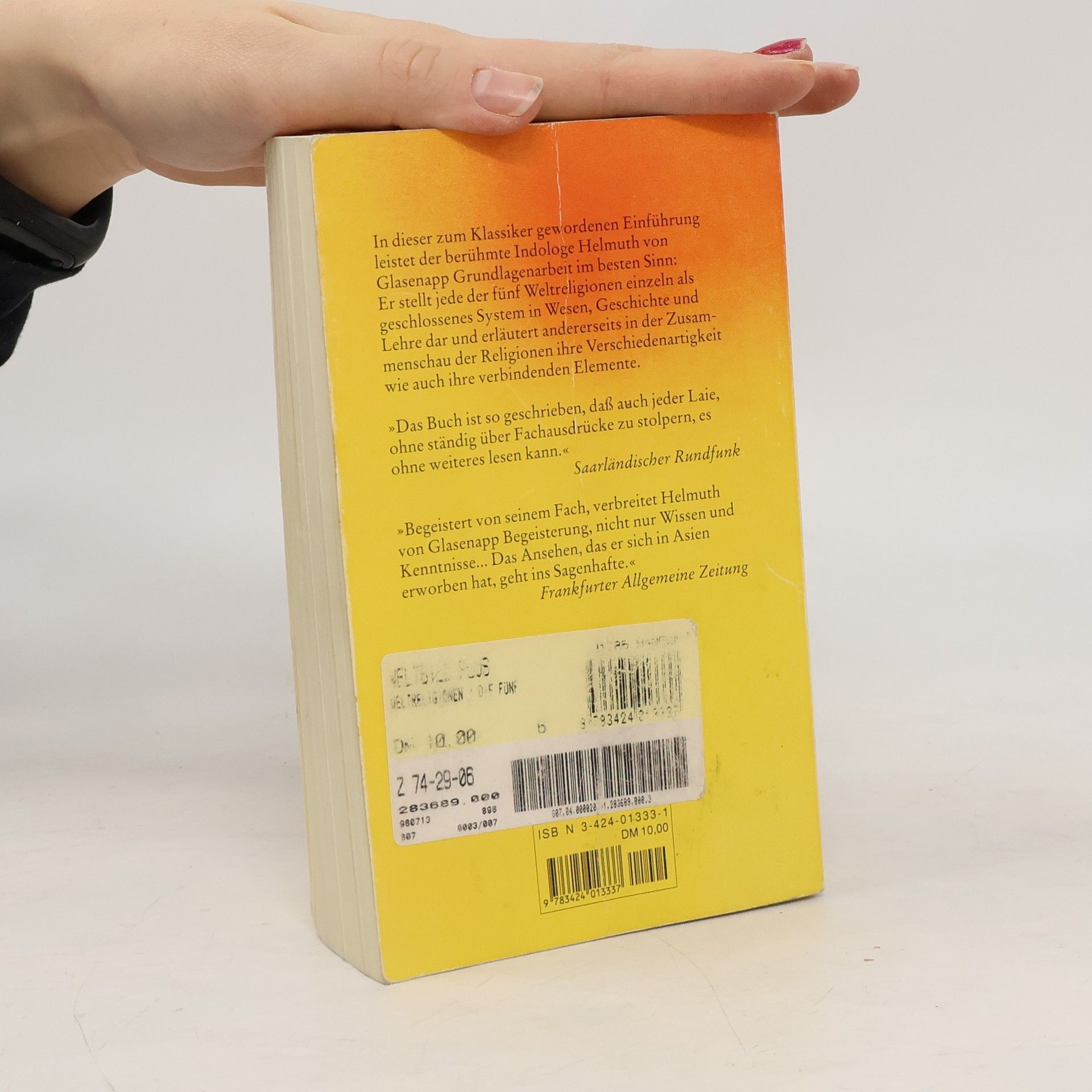 Der Bestseller von Helmuth von Glasenapp hat unzählige Menschen in die Welt der Religionen eingeführt. Bis heute ist sein Erfolg ungebrochen und kein anderes Buch konnte sich vergleichbar als Klassiker der Weltreligionen etablieren. Der berühmte Indologe leistet darin Grundlagenarbeit im besten Sinn: Er stellt jede der fünf Weltreligionen einzeln als geschlossenes System in Wesen, Geschichte und Lehre dar. Dazu erläutert er in der Zusammenschau, was die Religionen unterscheidet und was sie verbindet.