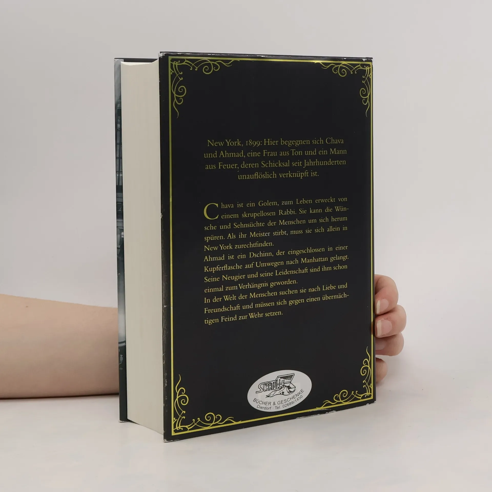 New York, 1899: Hier begegnen sich Chava und Ahmad, eine Frau aus Ton und ein Mann aus Feuer, deren Schicksal seit Jahrhunderten unauflöslich verknüpft ist. Chava wird von einem skrupellosen Rabbi als Golem erschaffen, für einen unglücklichen Tischler, der sich eine Frau wünscht. Mit ihr will er seine Heimat Polen für immer verlassen, um sein Glück in Amerika zu suchen. Doch als er auf der Überfahrt stirbt, ist Chava in der großen fremden Stadt vollkommen auf sich allein gestellt. Neugierig und voller Tatendrang - als Golem kann sie nicht nur die Wünsche und Sehnsüchte der Menschen spüren, sondern verfügt auch über übermenschliche Kräfte - fasst sie Fuß in der jüdischen Lower East Side. Ahmad, der Dschinn, stammt aus der syrischen Wüste und wurde vor Jahrhunderten von einem Zauberer in eine Kupferflasche eingeschlossen. Als die Flasche in die Hände eines Kupferschmieds in Manhattan gelangt, wird Ahmad aus seiner Gefangenschaft befreit. Anders als Chava langweilt Ahmad das Leben der Menschen. Er sucht - zum Unbehagen seines Befreiers, der ihn als Lehrling angenommen hat - nach abenteuerlichen Ablenkungen. Als Golem und Dschinn sich zufällig begegnen, erkennen sie ihre Seelenverwandtschaft. Doch die Gefahr, entdeckt zu werden, schwebt ständig über ihnen, und als ein mächtiger Feind auf den Plan tritt, verstehen sie, dass ihre Schicksale enger miteinander verknüpft sind, als sie dachten.