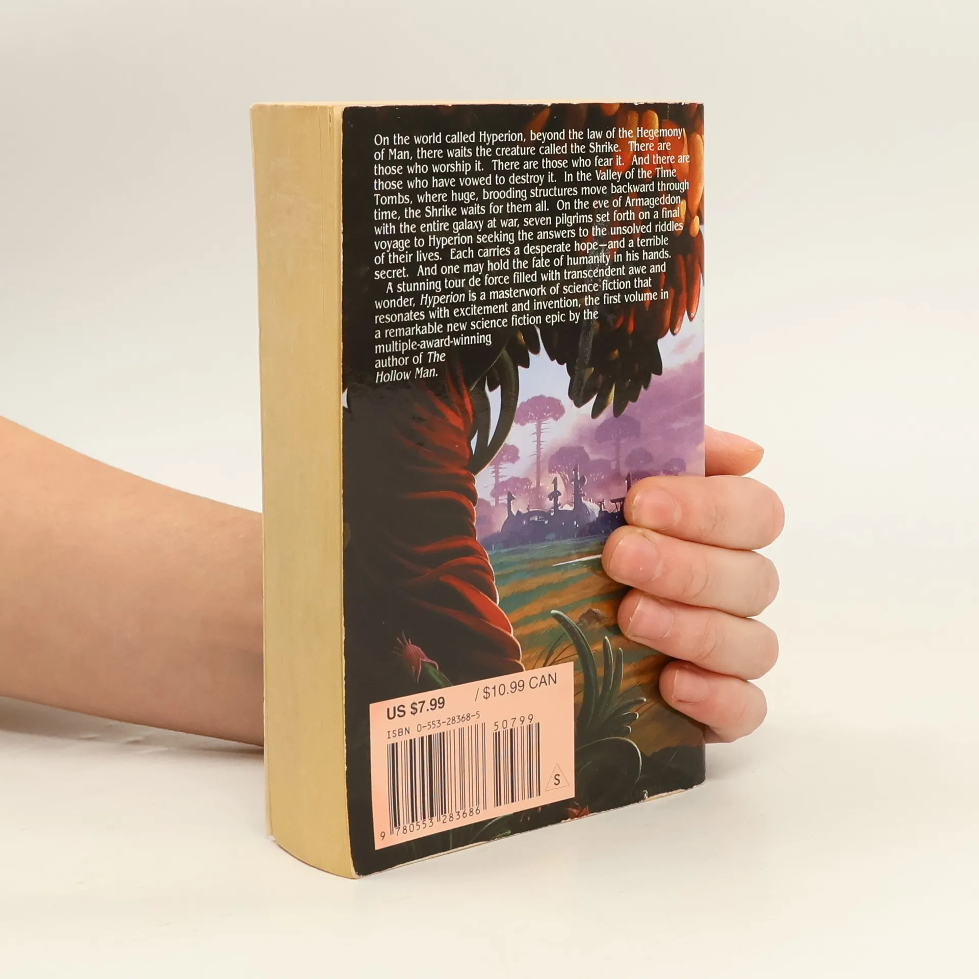 A stunning tour de force filled with transcendent awe and wonder, Hyperion is a masterwork of science fiction that resonates with excitement and invention, the first volume in a remarkable epic by the multiple-award-winning author of The Hollow Man. On the world called Hyperion, beyond the reach of galactic law, waits a creature called the Shrike. There are those who worship it. There are those who fear it. And there are those who have vowed to destroy it. In the Valley of the Time Tombs, where huge, brooding structures move backward through time, the Shrike waits for them all. On the eve of Armageddon, with the entire galaxy at war, seven pilgrims set forth on a final voyage to Hyperion seeking the answers to the unsolved riddles of their lives. Each carries a desperate hope—and a terrible secret. And one may hold the fate of humanity in his hands. Praise for Dan Simmons and Hyperion “Dan Simmons has brilliantly conceptualized a future 700 years distant. In sheer scope and complexity it matches, and perhaps even surpasses, those of Isaac Asimov and James Blish.”—The Washington Post Book World “An unfailingly inventive narrative . . . generously conceived and stylistically sure-handed.”—The New York Times Book Review “Simmons’s own genius transforms space opera into a new kind of poetry.”—The Denver Post “An essential part of any science fiction collection.”—Booklist