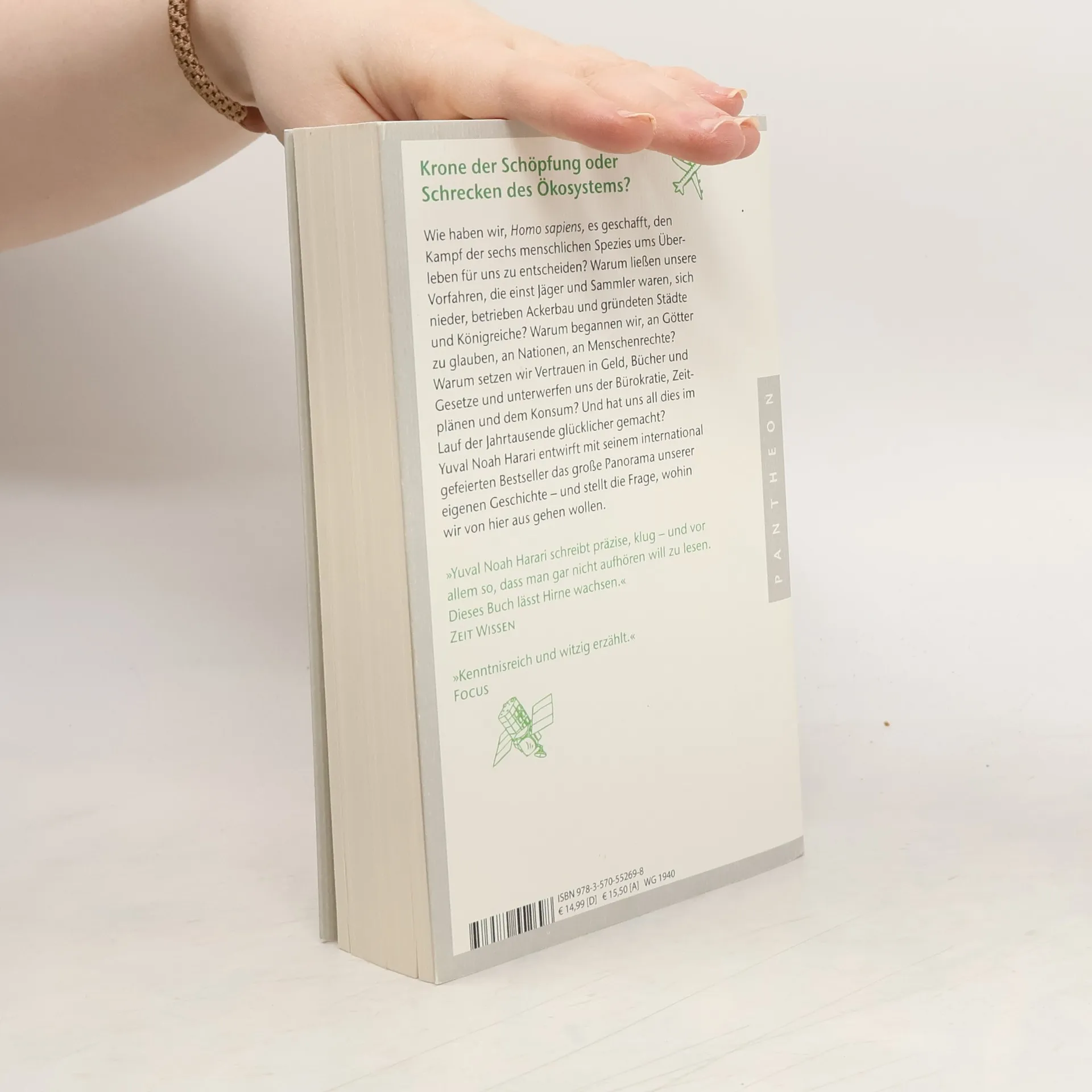Der Mensch: Krone der Schöpfung oder Schrecken des Ökosystems? Wie gelang es Homo Sapiens, den Überlebenskampf gegen andere menschliche Spezies zu gewinnen? Warum wandten sich unsere Vorfahren von Jägern und Sammlern zu Ackerbau, Städten und Königreichen? Was führte zu unserem Glauben an Götter, Nationen und Menschenrechte? Warum vertrauen wir auf Geld, Bücher und Gesetze und unterwerfen uns Bürokratie und Konsum? Hat uns dieser Wandel glücklicher gemacht? Vor 100.000 Jahren war Homo sapiens ein unbedeutendes Tier in Afrika, das mit fünf anderen menschlichen Spezies lebte. Ihr Einfluss auf das Ökosystem war vergleichbar mit dem von Gorillas oder Quallen. Vor 70.000 Jahren jedoch vollzog sich ein rascher Wandel, der Homo sapiens zur dominierenden Spezies und zum Schrecken des Ökosystems machte, vor allem aufgrund der besonderen Beschaffenheit seines Gehirns. Diese Vorherrschaft hat sich bis heute verstärkt: Der Mensch hat die Fähigkeit zu schöpferischem und destruktivem Handeln wie kein anderes Lebewesen. Jetzt steht die Menschheit an einem entscheidenden Punkt, an dem sie ihren zukünftigen Weg wählen muss. Internationaler Bestseller – in fast 40 Sprachen übersetzt. Harari schreibt präzise und fesselnd, was das Lesen zu einem Erlebnis macht. Sein Meisterwerk verbindet große historische Ereignisse mit der Kraft von Ideen.
