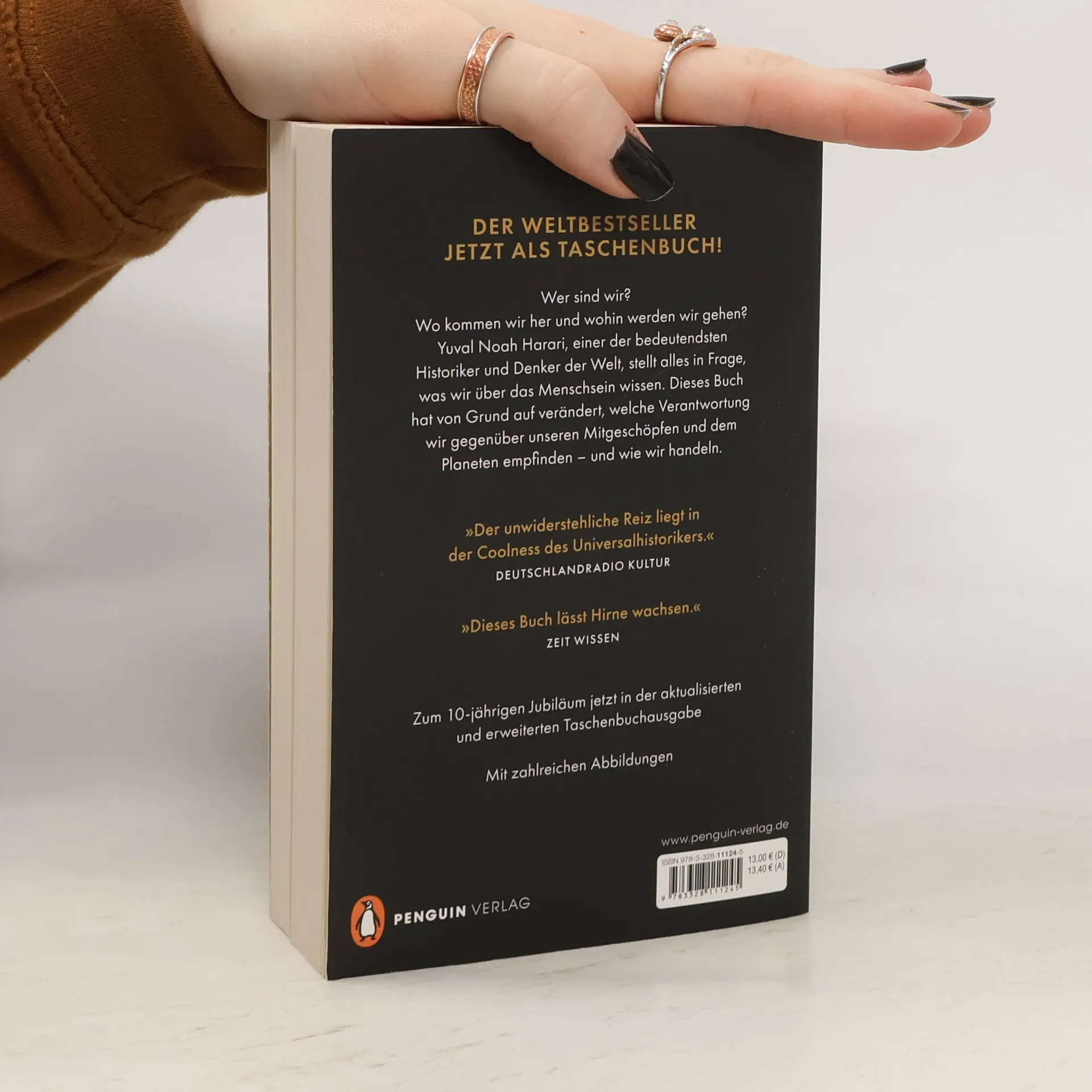 Der Millionenseller jetzt in einer günstigen und erweiterten Taschenbuchausgabe Vor 100.000 Jahren lebte Homo Sapiens als unbedeutende Spezies in einem abgelegenen Winkel des afrikanischen Kontinents. Heute ist der Mensch Herr und Schrecken des Planeten. Wie konnte es dazu kommen? In seiner fulminanten Reise von den Menschenaffen bis zum Cyborg entwirft Yuval Noah Harari mit seinem international gefeierten Bestseller »Sapiens - Eine kurze Geschichte der Menschheit« das große Panorama unserer eigenen Geschichte – und stellt die Frage, wohin wir von hier aus gehen wollen. »Sapiens« ist einer der größten Sachbucherfolge aller Zeiten und hat allein in Deutschland, bisher unter dem Titel »Eine kurze Geschichte der Menschheit«, über 2 Millionen Exemplare verkauft. Dieser immense Erfolg ist kein Zufall: Das Buch hat von Grund auf verändert, welche Verantwortung wir als Menschen gegenüber unseren Mitgeschöpfen und dem Planeten empfinden – und wie wir handeln. »Yuval Noah Harari schreibt präzise, klug – und vor allem so, dass man gar nicht aufhören will zu lesen. Dieses Buch lässt Hirne wachsen.« ZEIT WISSEN Das Buch erschien erstmals 2013 unter dem Titel »Eine kurze Geschichte der Menschheit« bei DVA. Diese Taschenbuchausgabe ist aktualisiert und um ein neues Nachwort ergänzt. Mit zahlreichen Abbildungen