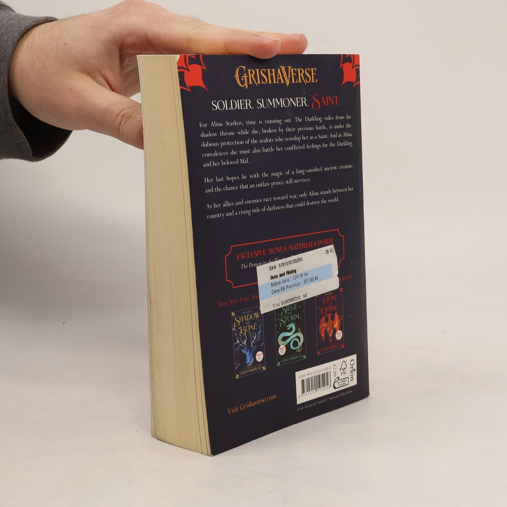 Soldier. Summoner. Saint. The nation's fate rests with a broken Sun Summoner, a disgraced tracker, and the shattered remnants of a once-great magical army. The Darkling rules from his shadow throne while a weakened Alina Starkov recovers from their battle under the dubious protection of the zealots who worship her as a Saint. Now her hopes lie with the magic of a long-vanished ancient creature and the chance that an outlaw prince still survives. As her allies and enemies race toward war, only Alina stands between her country and a rising tide of darkness that could destroy the world. To win this fight, she must seize a legend's power but claiming the firebird may be her ruin