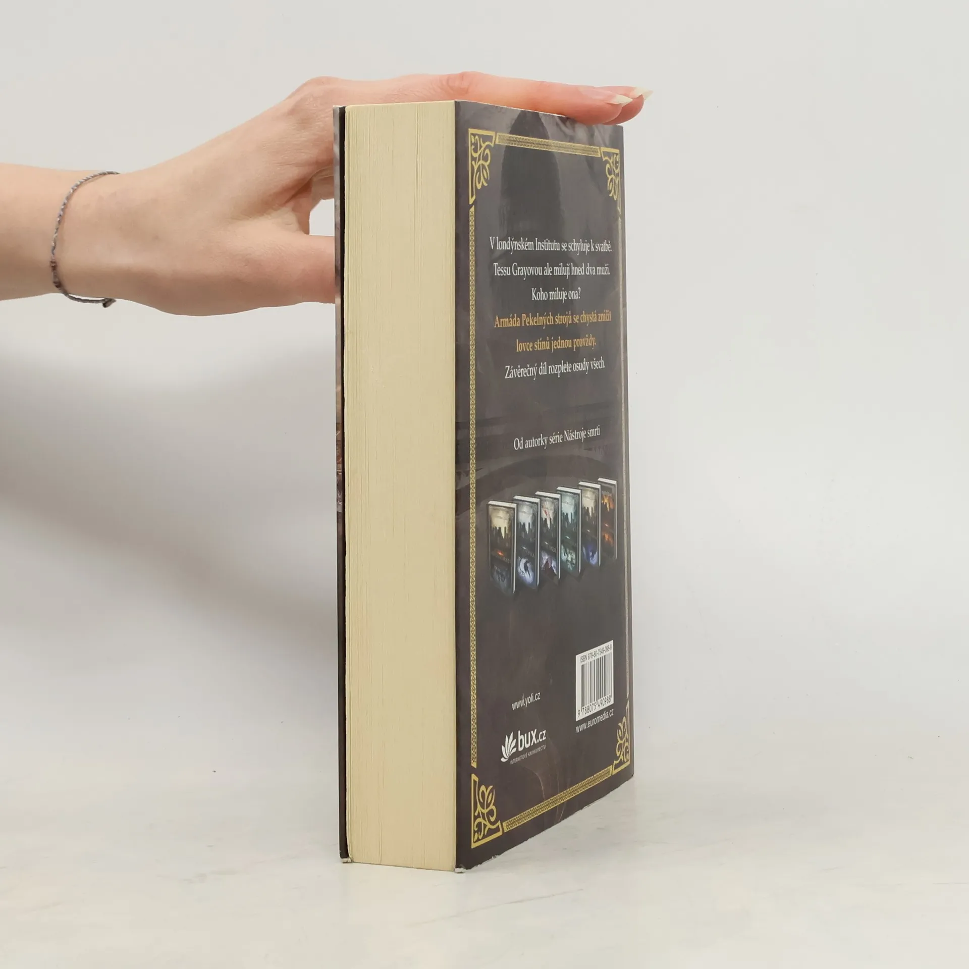 Nad londýnským Institutem se stahují mračna. Mortmain připravuje útok na lovce stínů; chce je zničit pomocí pekelných strojů, armády nelítostných mechanických bytostí. Na dokončení svého plánu potřebuje už jen jedno: Tessu Grayovou. Lovci stínů se snaží vypátrat Mortmaina dřív, než armádu vyšle do útoku. Když však Mortmain Tessu unese, Jem a Will, kteří si oba dělají nároky na její srdce a lásku, jsou ochotní udělat cokoliv pro její záchranu. Tessa si uvědomuje, že jediný, kdo jí může pomoci, je ona sama. Ale dokáže se jedno obyčejné děvče postavit celé armádě pekelných strojů?