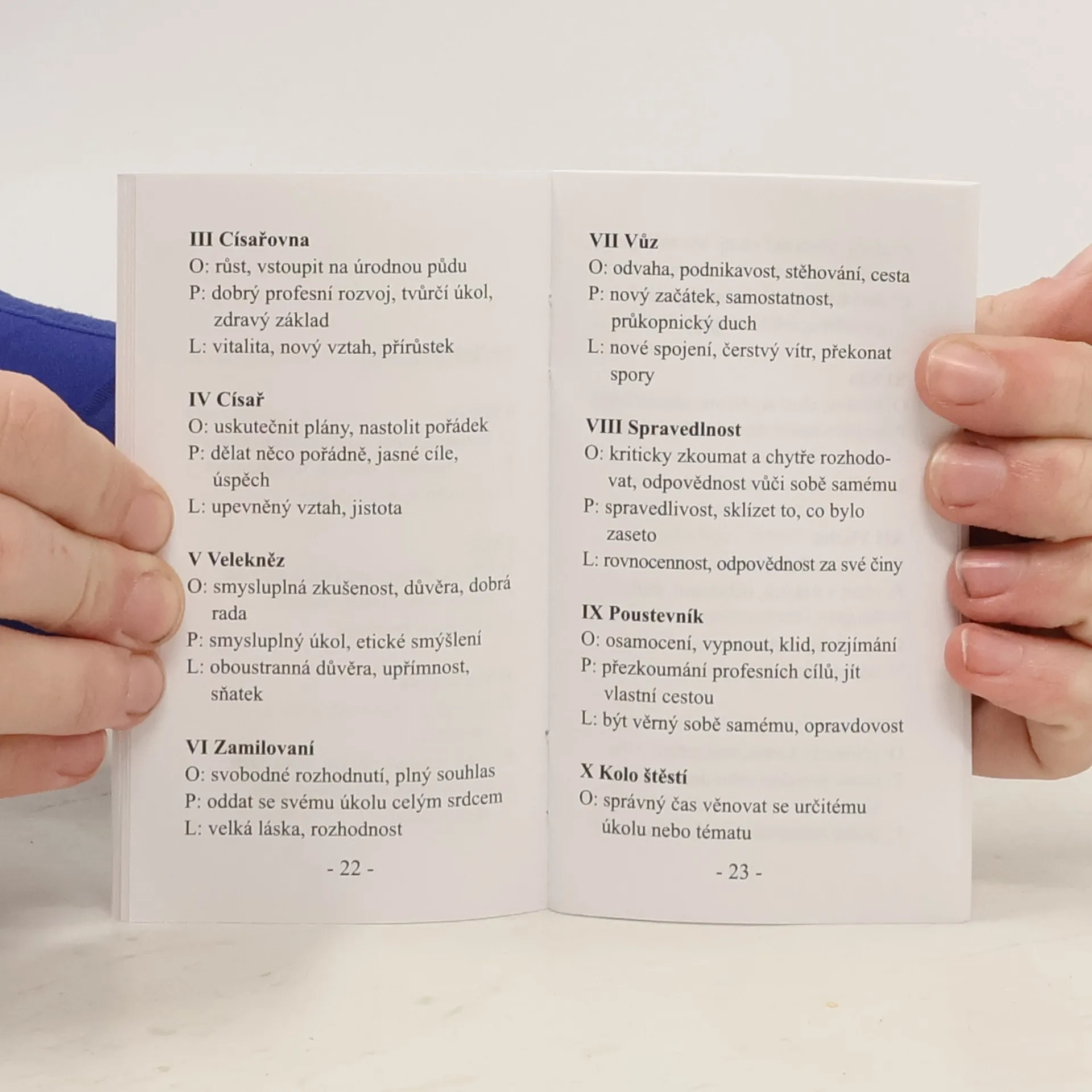 Univerzální symboly a archetypy osloví svou jednoduchou řečí opravdu každého. Nabízejí zdroj inspirace a odvahy k překonání překážek a životních problémů. Vyznačuje se několika zvláštnostmi. Nejenže autor zaměnil čísla některých karet Velkých arkán, ale zároveň umístil Blázna s číslem 0 před Mága namísto obvyklé pozice mezi číslem 20 a 21. Navíc čísla 1–10 jsou u každé barvy rovněž opatřeny obrazovou symbolikou, která činí výklad pestřejším.