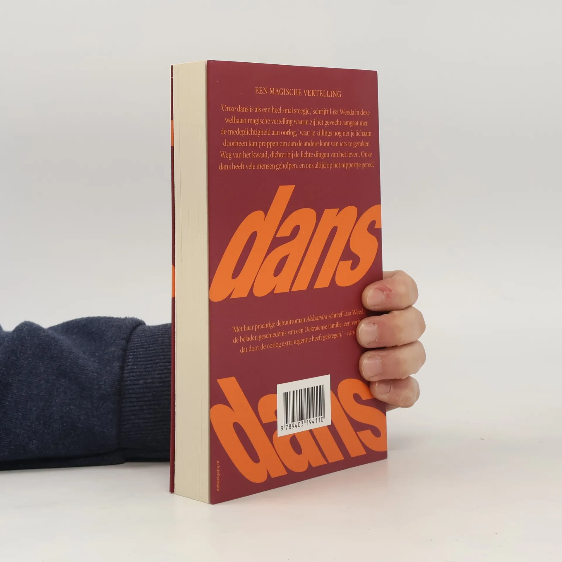 Het is de nacht waarop de dorpelingen van Utsjelinavka het kwaad, de duivel en het duister uitdrijven. Het is de dag waarop Toni twee kinderlijken ophaalt tijdens haar body drop off -dienst. Het is de ochtend waarop de dode soldaat Danylo wakker wordt gedanst door een Nederlands meisje. Het is de tijd waarin we wegkijken. Dit is Dans dans revolutie, een boek waarin Lisa Weeda in vier welhaast magische verhaallijnen het gevecht aangaat met westsplaining, de machteloosheid van de al negen jaar slepende Russisch-Oekraïense oorlog en de arbeidsmigratie in Europa.De oude tijden hebben ons maar al te vaak verraden, schrijft ze, maar onze dans, als een heel smal steegje waar je zijlings net nog je lichaam doorheen kan proppen om aan de andere kant van iets te geraken, heeft ons altijd op het nippertje gered.