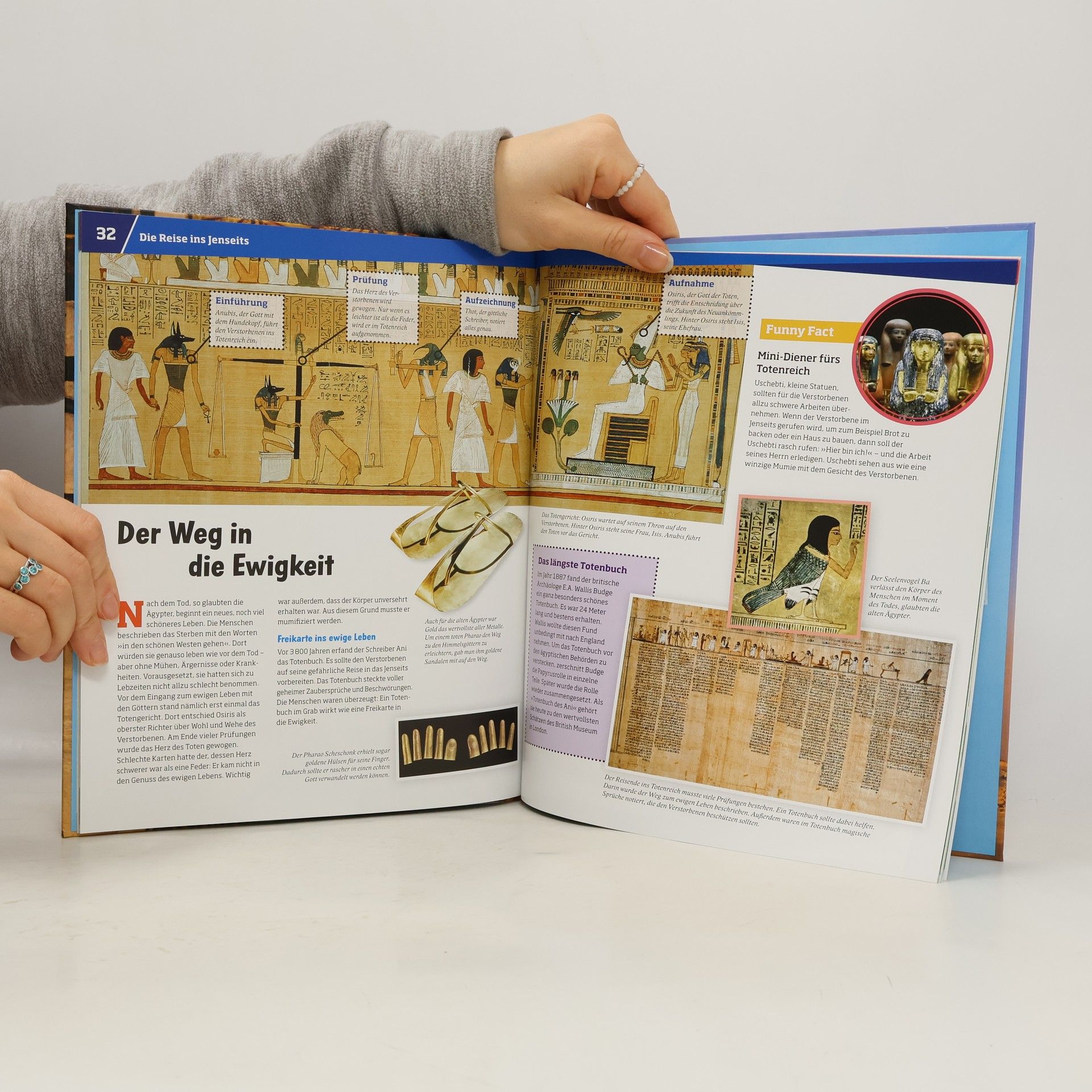 Das alte Ägypten entstand vor fünftausend Jahren in der Wüste, mit beeindruckenden Pyramiden, monumentalen Götter-Statuen und geheimnisvollen Mumien, die von einer der großartigsten Kulturen zeugen. Die alten Ägypter hinterließen viele Aufzeichnungen und Zeichnungen, die bis heute erhalten sind. Archäologen entdeckten Grabstätten, Häuser und Alltagsgegenstände, die uns Einblicke in das Leben der Menschen geben. Die Mehrheit lebte in Dörfern als Bauern, Fischer, Händler oder Handwerker in einfachen, einstöckigen Häusern, wo sie auf Matten am Boden schliefen und ihre wenigen Besitztümer in Kisten aufbewahrten. In jedem Dorf gab es wohlhabendere Beamte und Handwerker, die sich größere Anwesen mit Gärten und eigenen Brunnen leisten konnten. Diese Villen waren von hohen Mauern umgeben und boten Platz für Möbel wie Stühle, Betten und Toiletten. Über 3.000 Jahre regierten Pharaonen, von denen einige so berühmt wurden, dass sie bis heute bekannt sind. Der WAS IST WAS Band lädt junge Leser ab 8 Jahren ein, in dieses faszinierende Reich einzutauchen, wo Grabräuber Juwelen suchten, Katzen verehrt und Götter gewaschen wurden.
